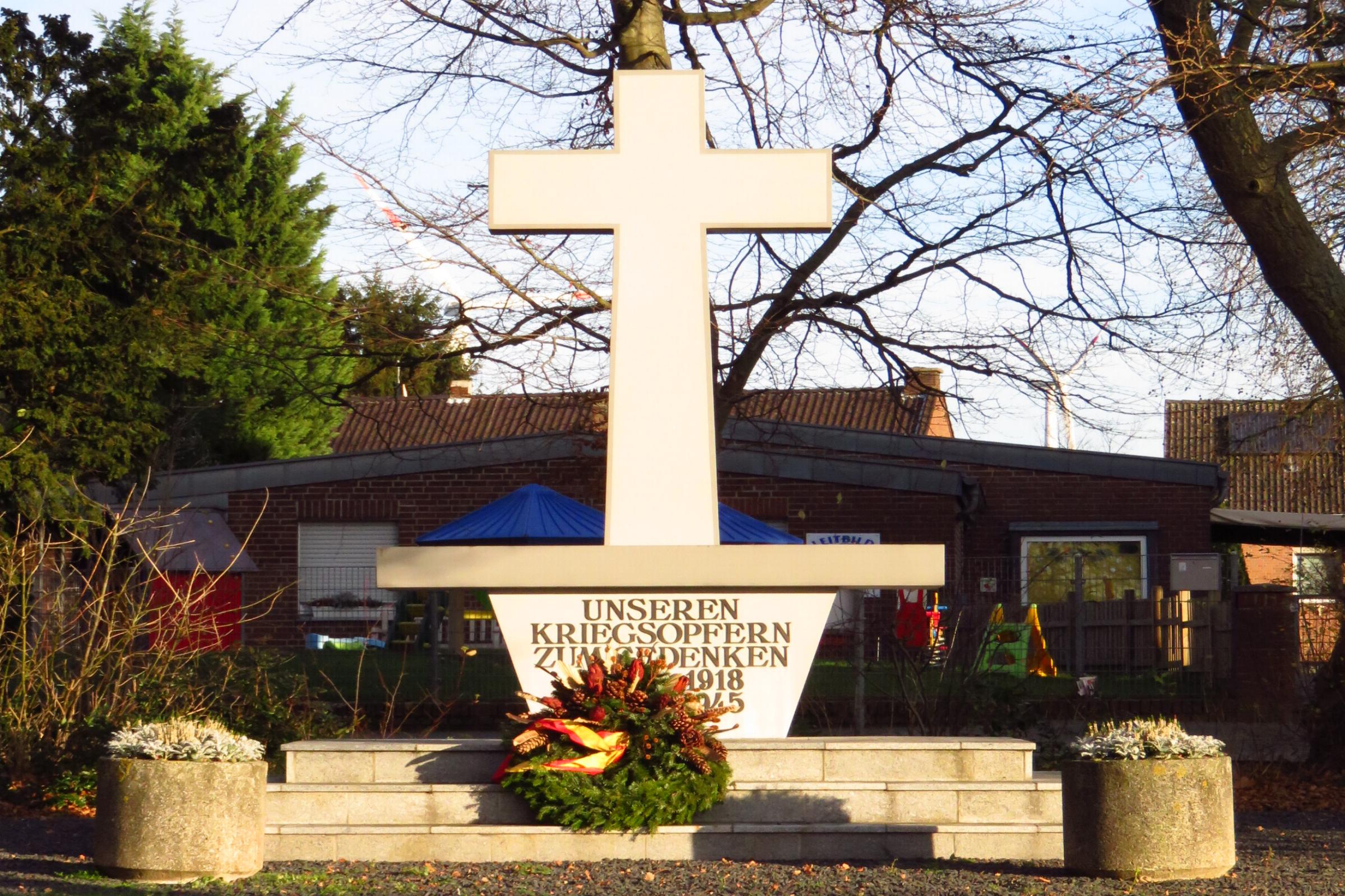 Standort: Das Ehrenmal hat seinen Standort an der Südseite der Kirche, im Stadtteil Mönchengladbach - Wanlo. Das Ehrenmal ist beschrieben mit dem Text: UNSEREN KRIEGSOPFERN ZUM GEDENKEN 1914 - 1918 1939 - 1945 |