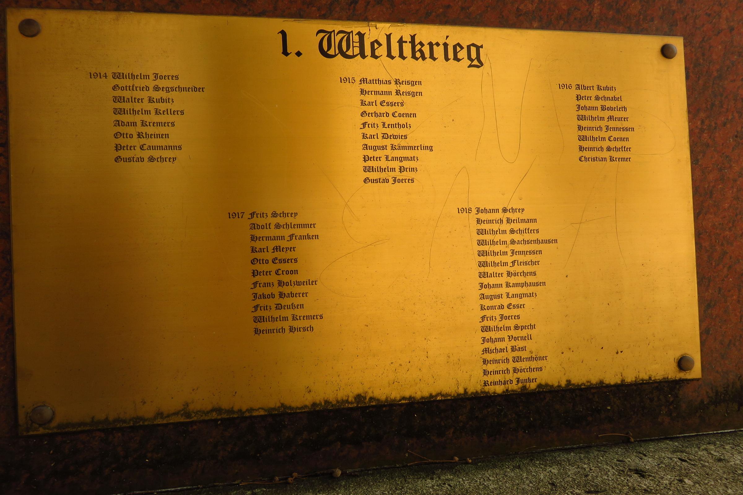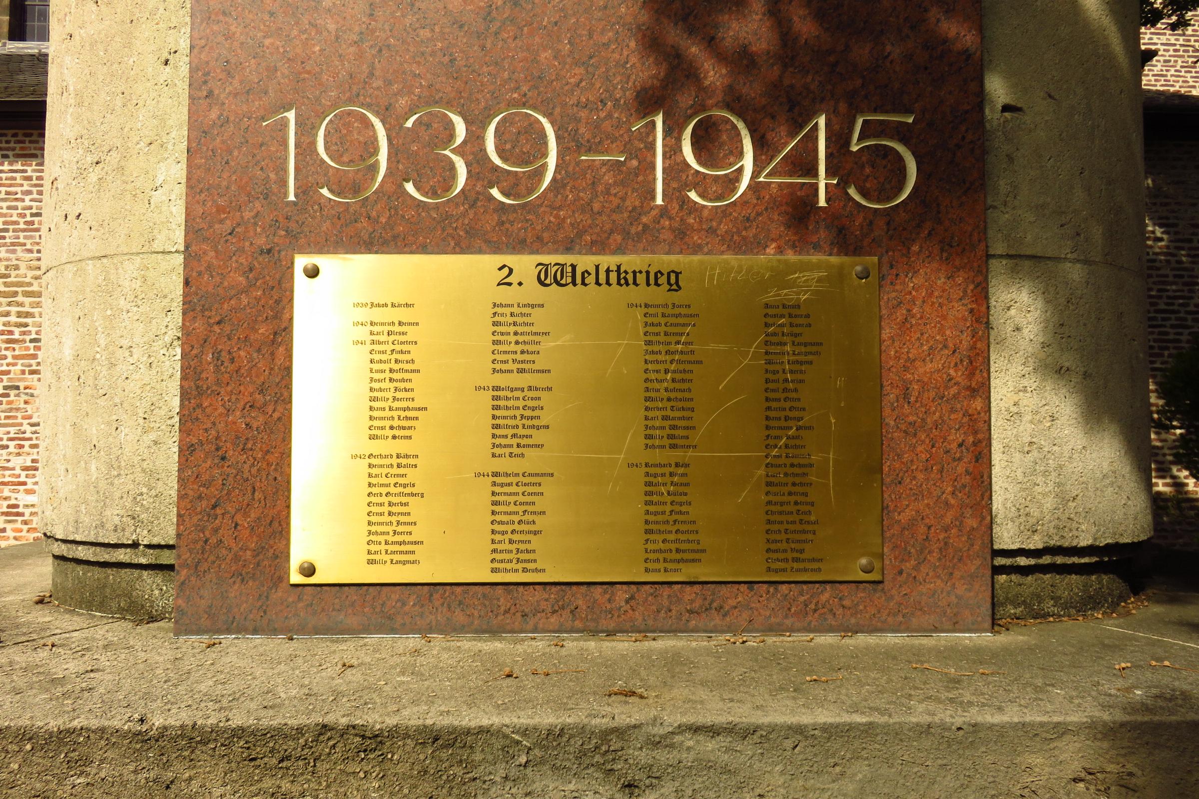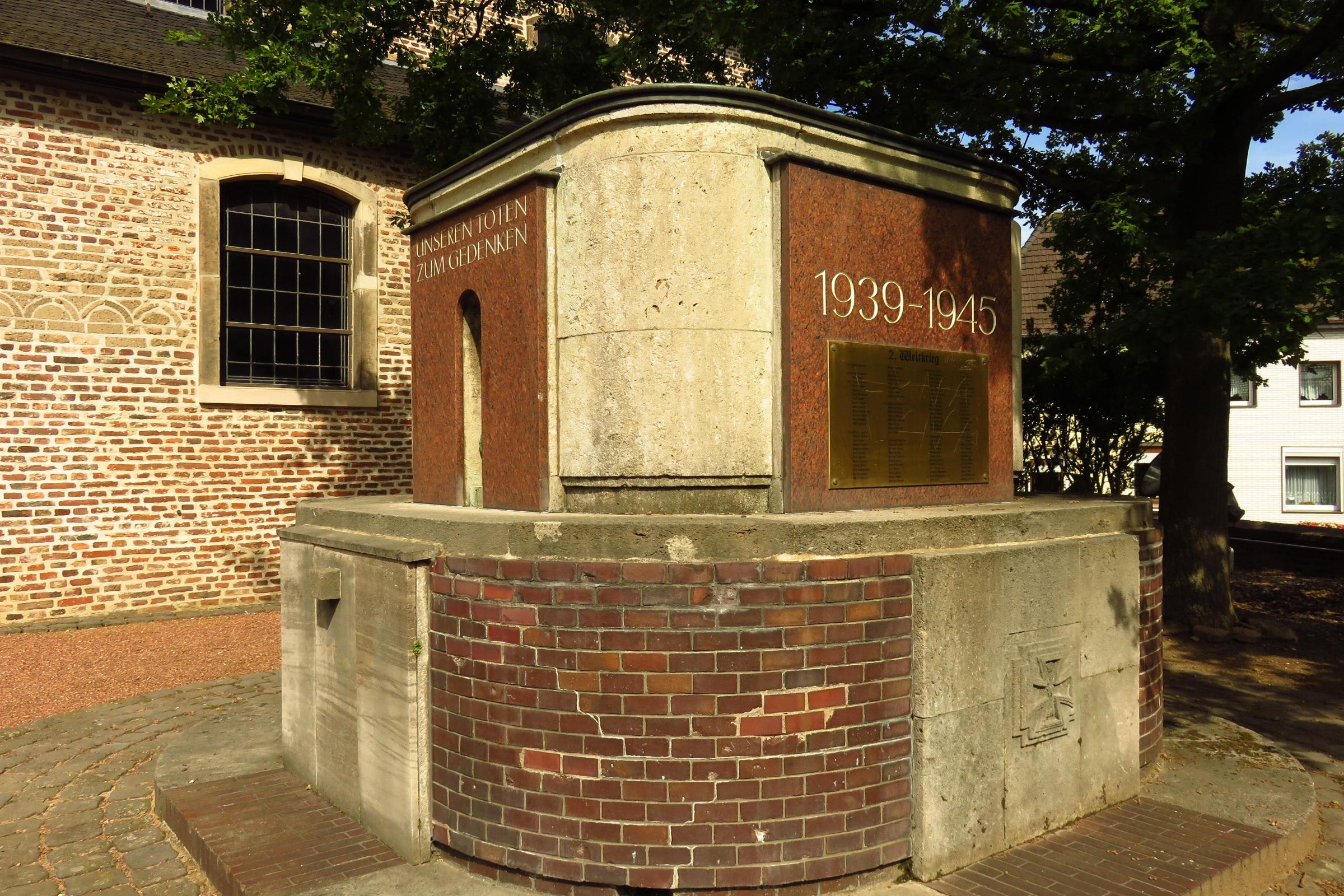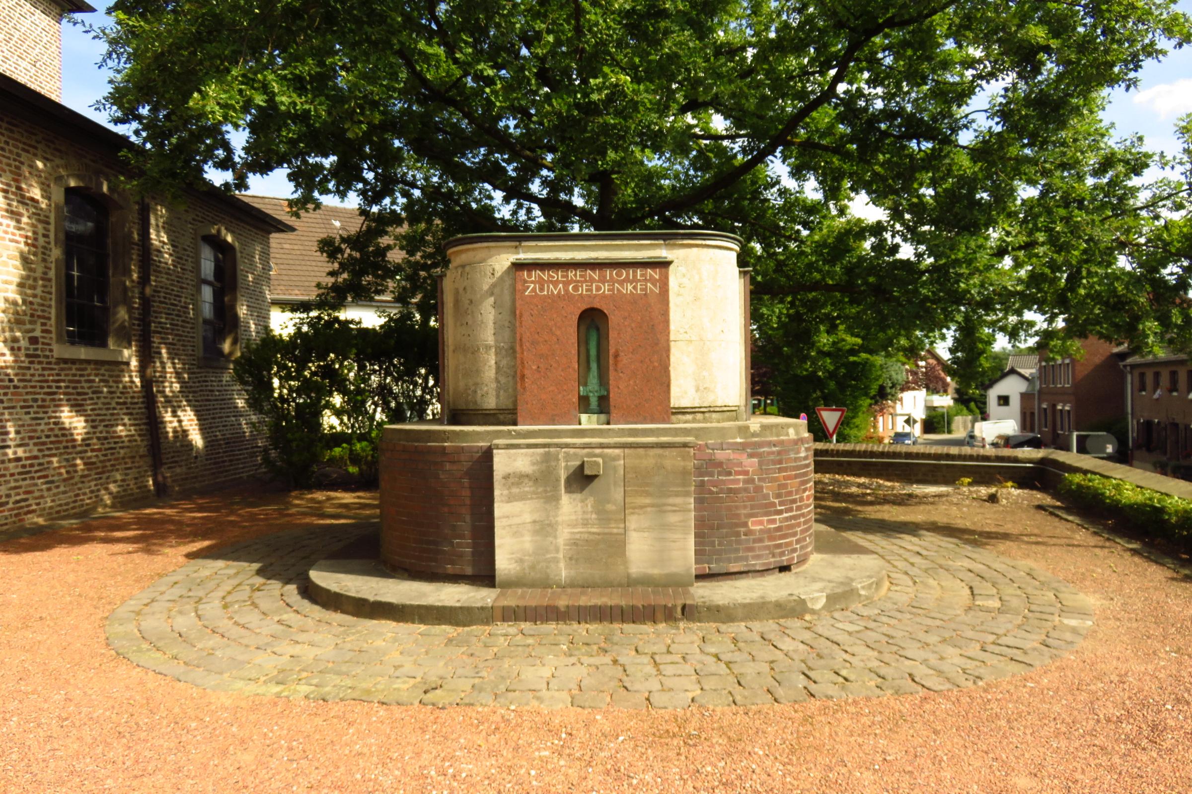 Standort: Neben der Evangelischen Kirche an der Berger Dorfstraße 53a im Stadtteil Mönchengladbach - Wickrathberg befindet sich das Gefallenendenkmal "Unseren Toten zum Gedenken 1870-1871, 1914-1918 und 1939 1945". Auf mehrern Tafeln stehen die Namen der gefallenen und vermissten Soldaten der beiden Weltkriege. Das Gefallenendenkmal wurde am 12. Oktober 1930 vom damaligen Pastor Werner Lüderitz eingeweiht.