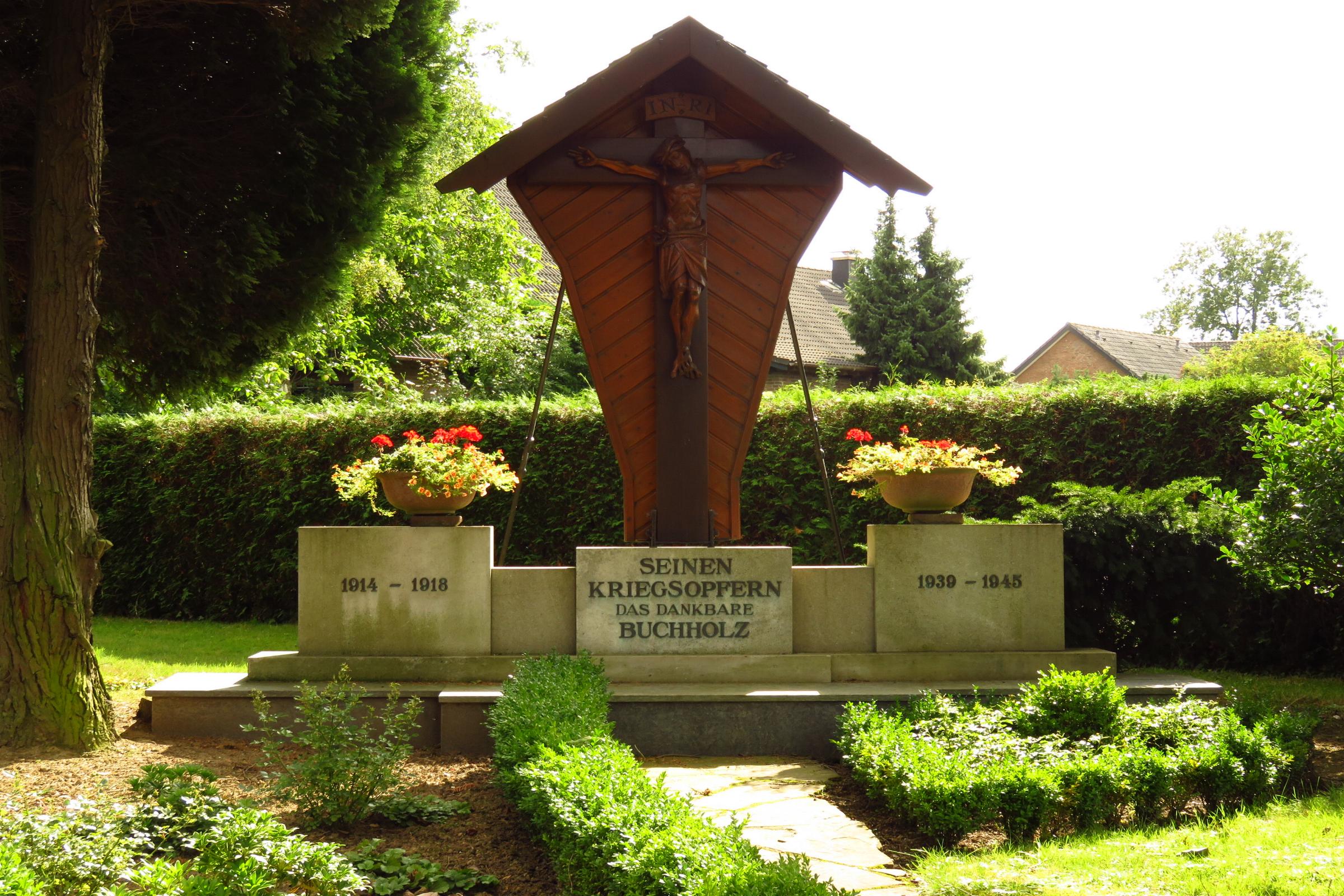 Standort: Der katholische Friedhof befindet sich an der Laurentiusstraße 56-58 in Mönchengladbach - Buchholz. Der Friedhof liegt unmittelbar an der Kapelle St. Laurentius. Das Grundstück mit Kapelle, Friedhof, Totenhalle, Hochkreuz und Ehrenmal ist Eigentum des Kapellenbauvereins e.V. 1921. Der Friedhof wurde 1927 angelegt und ist in einem sehr ordentlichen Zustand. Vor der Kirche befindet sich das Kriegerehrenmal zum Gedenken der gefallenen und vermissten Soldaten beider Weltkriege.
