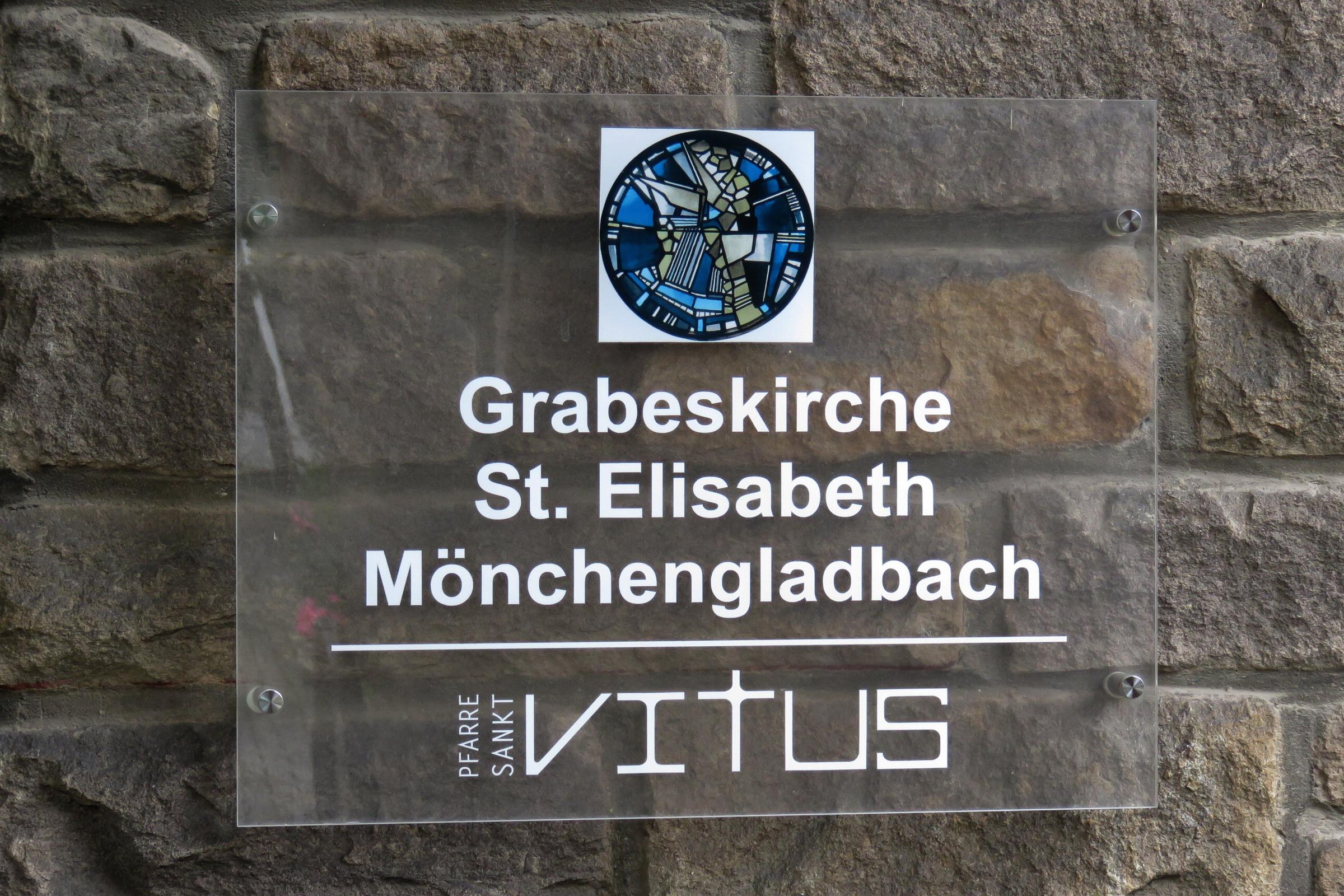 Standort: Die Kirche St. Elisabeth befindet sich an der Bergstraße 65, im Stadtteil Eicken (Untereicken) in der Stadt Mönchengladbach. Die Kirche wird seit November 2011 als Grabeskirche St. Elisabeth genutzt. Geschichte: Nach Plänen des Architekten Hermann Schagen aus Düsseldorf wurde am 14. Mai 1933 der Grundstein für die Elisabethkirche gelegt. Durch zahlreiche Spenden konnte die Kirche bereits am 29. April 1934 geweiht werden. Am 14. Februar 1942 wurde die Kirche durch Bombenabwurf beschädigt. Nach einem Umbau wurde am 24. November 1985 ein neuer Altar geweiht. Architekt war Adolf Esser-Holdefer.