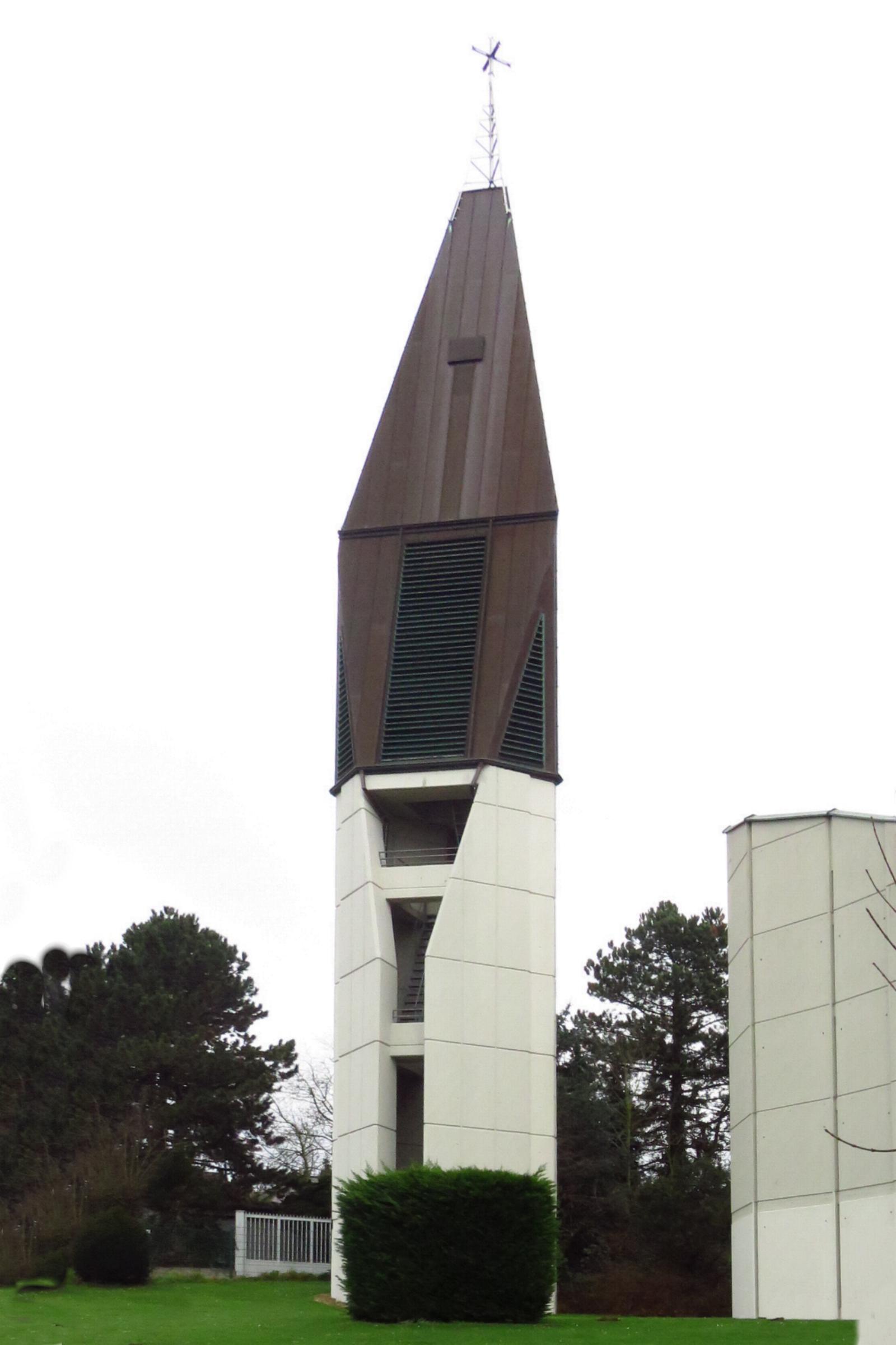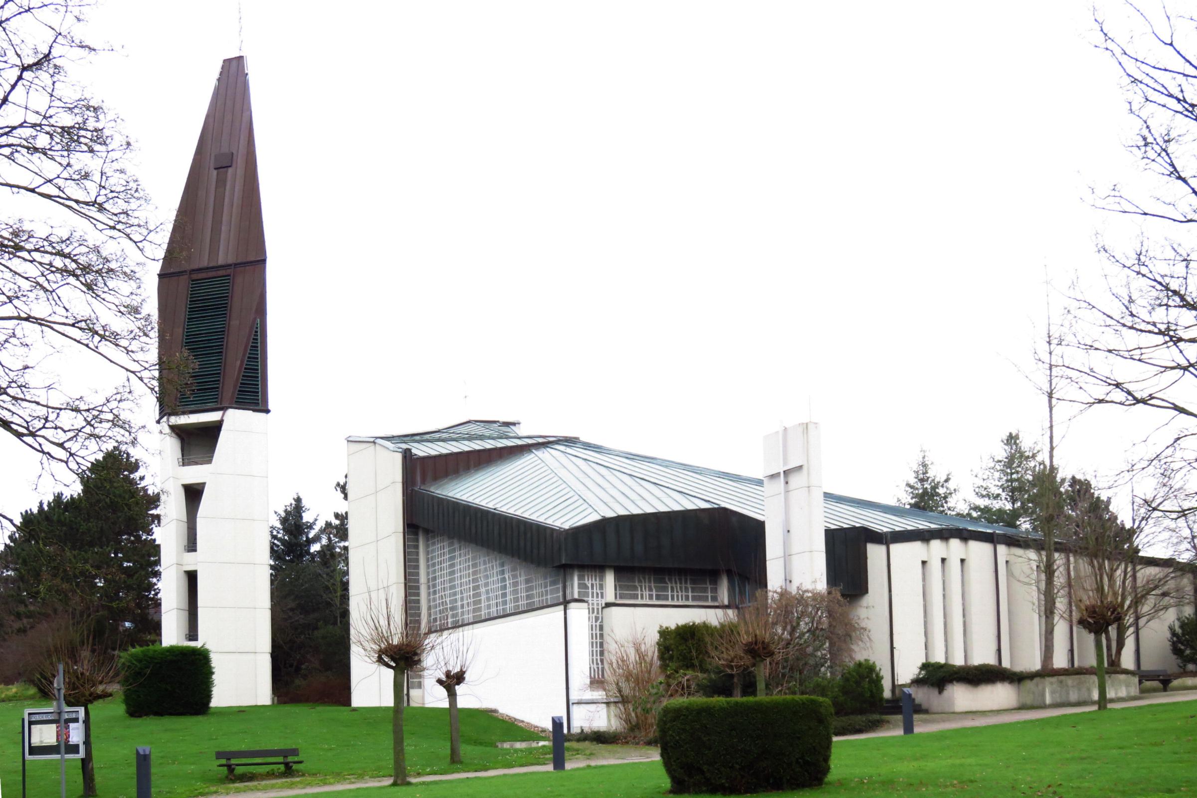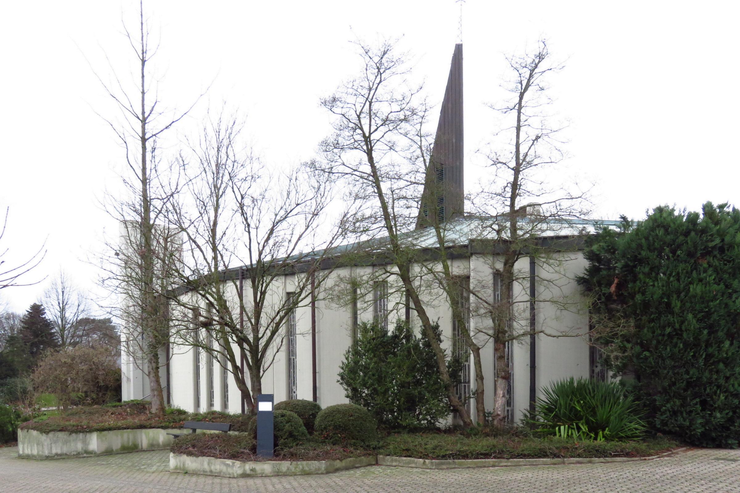 Architektur: Bei dem Gebäude handelt es sich um einen Beton-Kalksandstein-Bau über einem quadratischen Grundriß, der diagonal ausgerichtet ist. Der Altarbezirk in der Nordwestecke ist aufsteigend und über das Quadrat hinaus polygonal gestaltet. An der Südseite befindet sich die Werktagskapelle, an der Ostseite steht der Beichtraum und die Sakristei. Diagonal dem Altarraum gegenüber ist die Taufkapelle gebaut. Quellenhinweis: * Dritte Ausgabe 1994: Handbuch des Bistums Aachen ISBN 3-87448-172-7 S. 1094-1095
