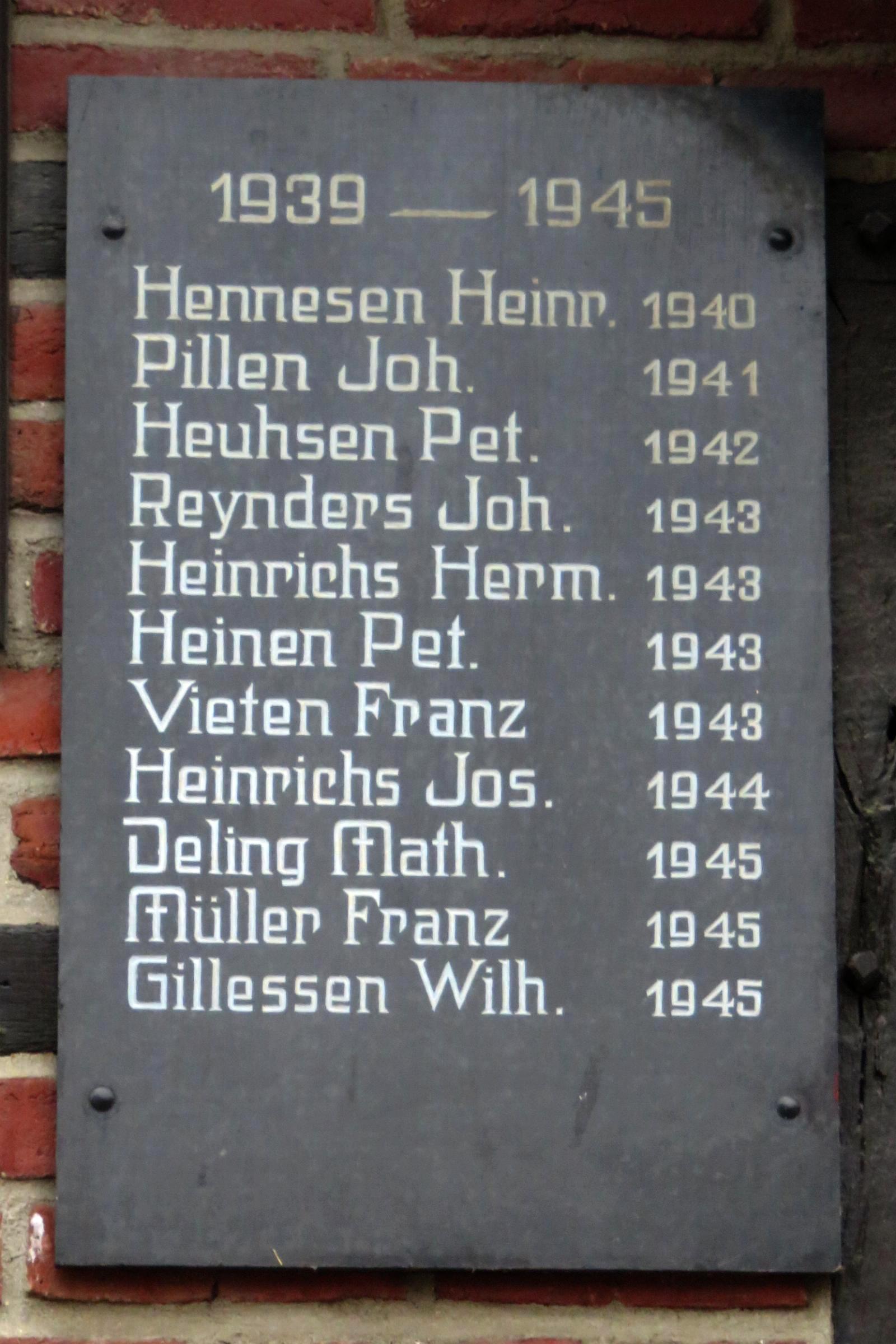 Quellenhinweis: * Dritte Ausgabe 1994: Handbuch des Bistums Aachen ISBN 3-87448-172-7 S. 1072 * Denkmalbeschreibung Mönchengladbach Nr. G 024 Infos zur Kapelle: * In der Kapelle sind ein Altar, ein Kruzifix, eine Heiligenfigur, Kerzen- und Blumenschmuck. * Im Dachreiter ist eine kleine Glocke eingebaut. * Über dem Eingang zwei Gedenktafeln mit den Namen der gefallenen und vernissten Soldaten der Weltkriege