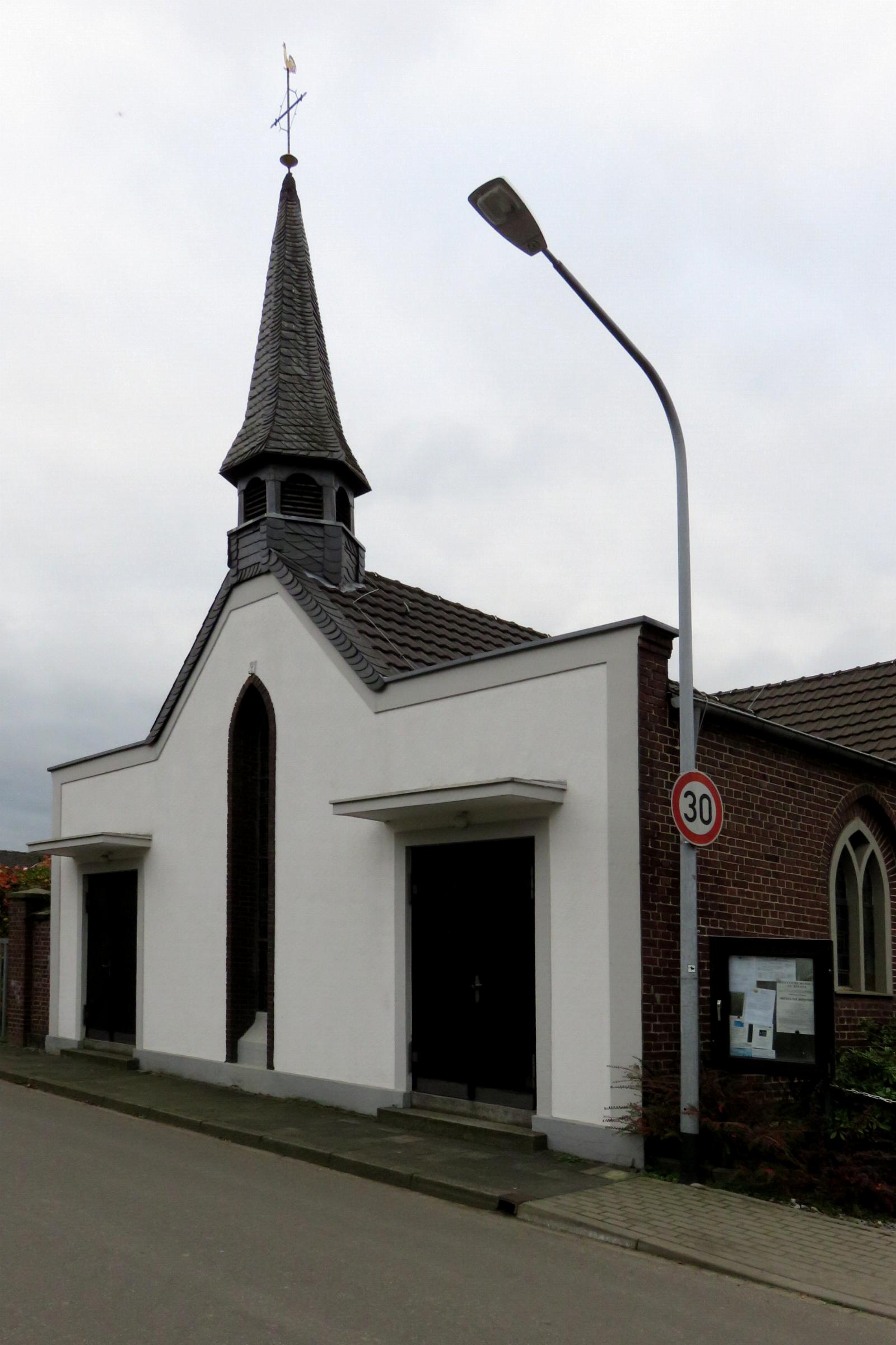 Giebeldreieck reichendes schmales Spitzbogenfenster erhielt. Das Objekt ist aus ortsgeschichtlichen und kunstgeschichtlichen Gründen als Baudenkmal schützenswert. Quellenhinweis: * Dritte Ausgabe 1994: Handbuch des Bistums Aachen ISBN 3-87448-172-7 S. 1081 * Denkmalbeschreibung Mönchengladbach Nr. G 052