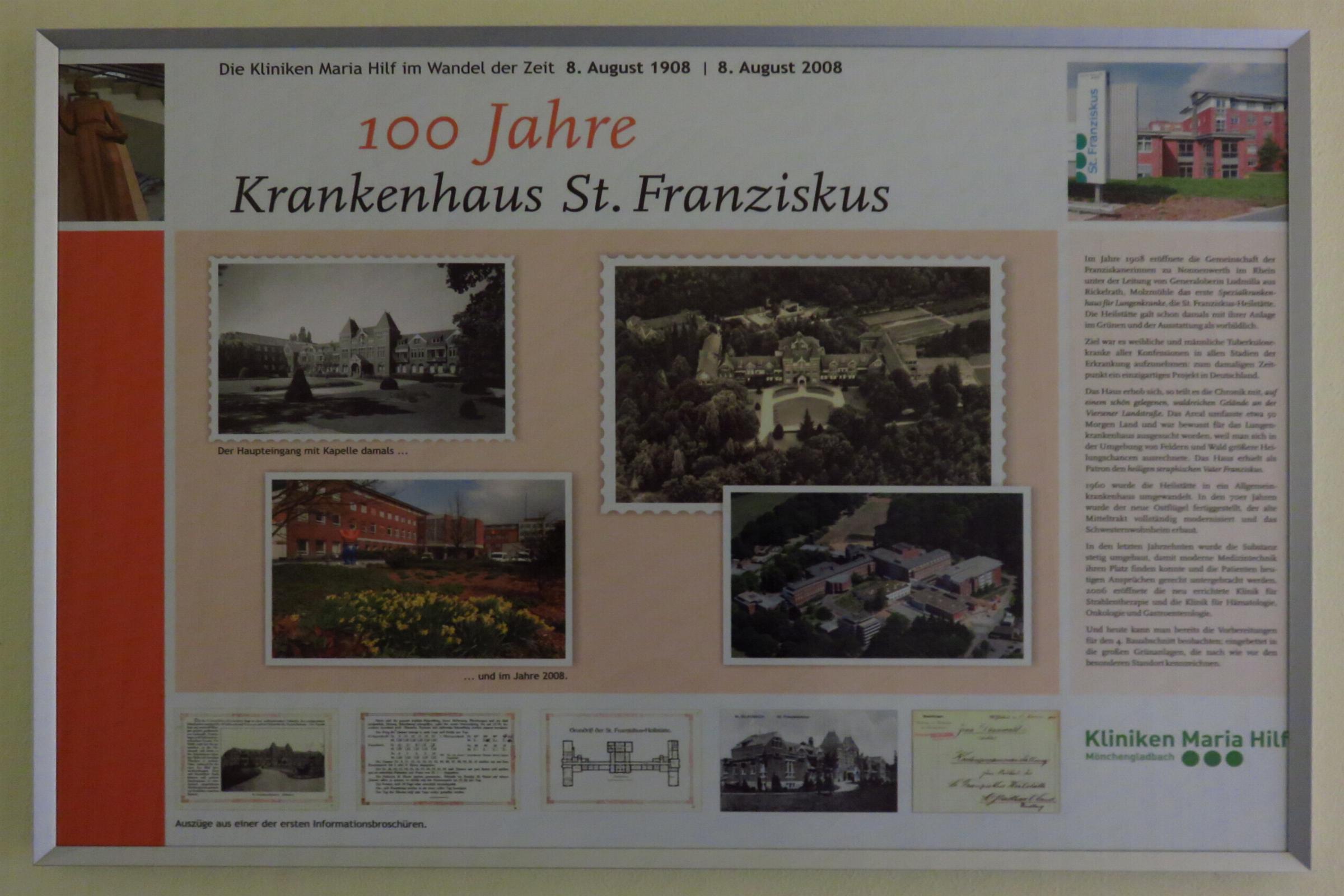 Quellenhinweis: * Im Dienste an den Menschen (Die Tätigkeit der Franziskanerinnen) * 125 Jahre Krankenhaus Maria Hilf Mönchengladbach (Festschrift) * Auszug aus der Chronik der St. Franziskus-Heilstätte