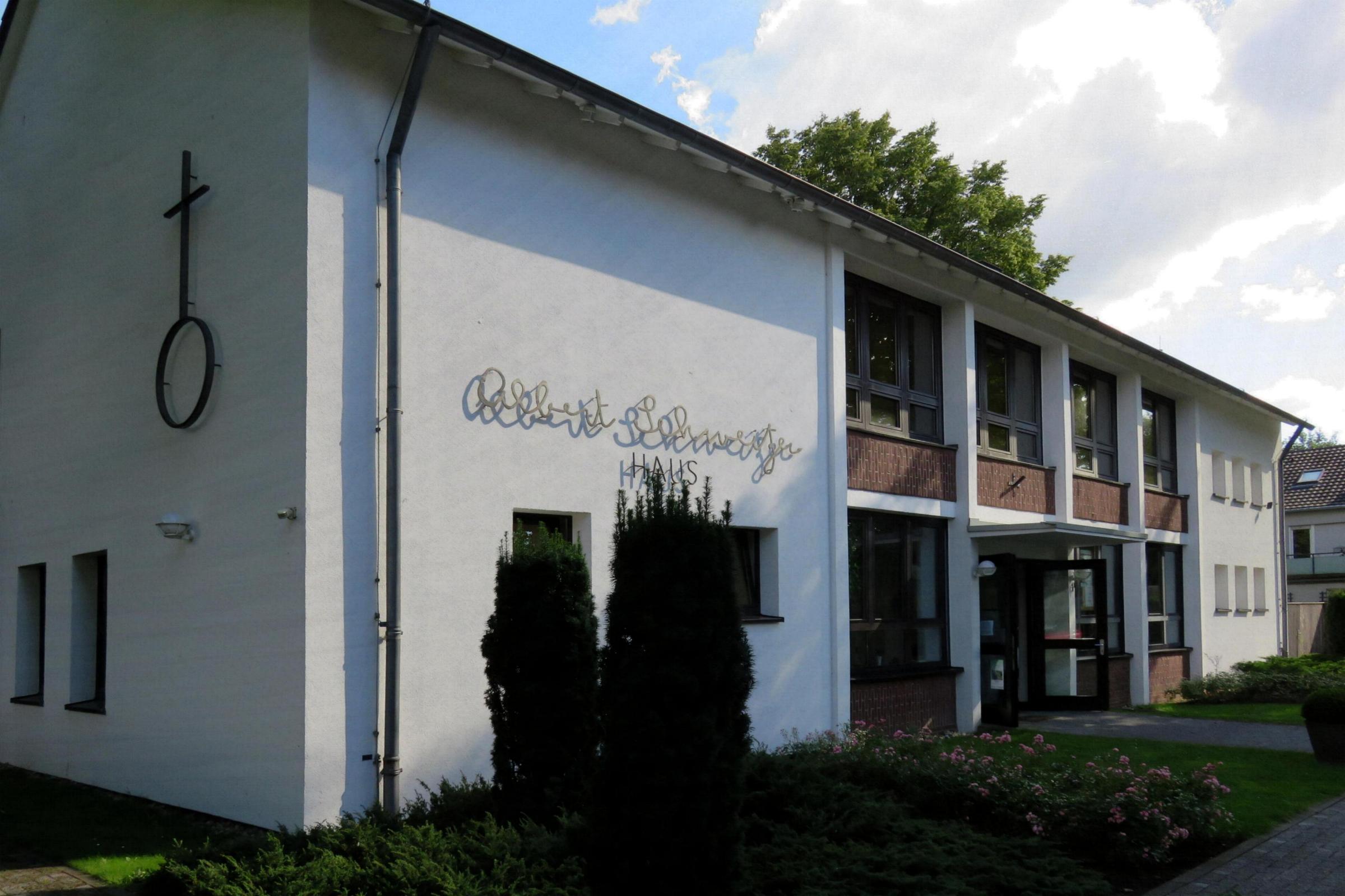 Standort: Das evangelische Albert - Schweitzer - Haus hat seinen Standort an der Straße Vossenbäumchen 14 im Stadtteil Mönchengladbach - Hardt. Bestandteil des Hauses ist der Kirchsaal und das Gemeindehaus. * Geschichte des Albert-Schweitzer-Haus in Hardt