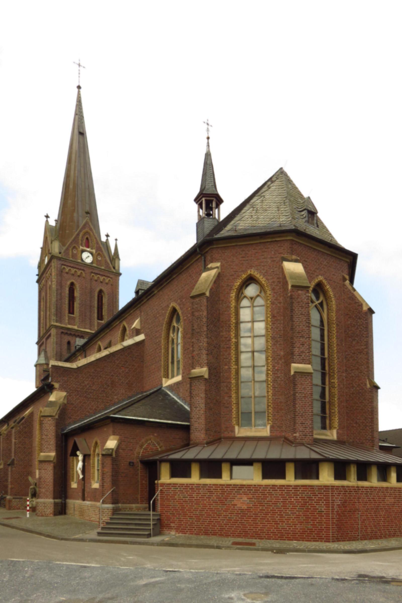 Architektur: Bei dem Bauwerk handelt es sich um eine dreischiffige Backsteinbasilika in sechs kreuzrippengewölbten, spitzbogigen Jochen. Am Triumphbogen fügt sich der dreiseitig, schließende Chor mit einem Sterngewölbe an. Der eingezogene Westturm endet in vier spitzen Giebeln und hat einen schlanken achtseitigen Helm. Quellenhinweis: * Dritte Ausgabe 1994: Handbuch des Bistums Aachen ISBN 3-87448-172-7 S. 1085-1087