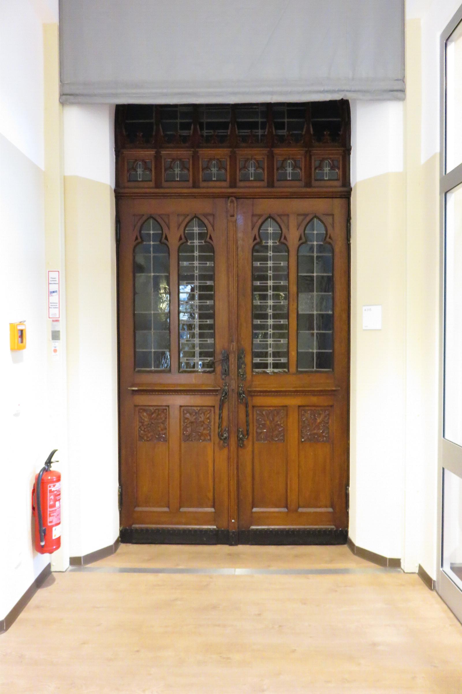 Architektur Die Kapelle befindet sich im westlichen Seitenflügel des viergeschossigen Haupthauses unter einem Krüppelwalmdach. Auf einer mächtigen, nach Süden hin profiliert gebauten Konsole steht ein über zwei Geschosse reichender Natursteinerker. Der im neuromanischen Formen gebaute Erker bildet im Inneren der Kapelle eine chorähnliche Apsis. Die linke Seite der Kapelle wird durch zwei, die rechte durch vier rundbogige Fensterachsen belebt. Über dem Eingangsbereich der Kapelle erstreckt sich über die gesamte Breite der Kapelle eine Empore. Quellenhinweis: * Geschichte der Hardterwald Klinik * Denkmalbeschreibung der Stadt Mönchengladbach Nr. L 015