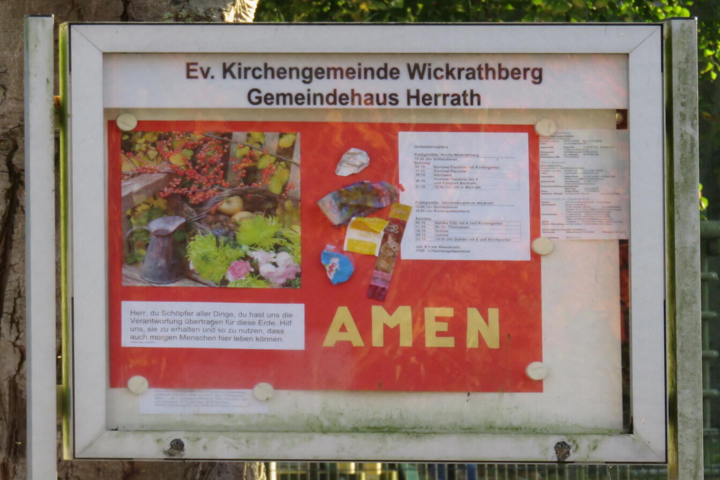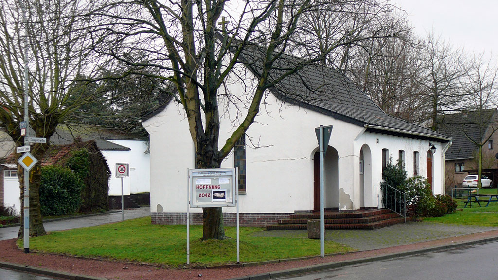 Herrather Linde / Ringstraße, D 41189 Mönchengladbach - Herrath GPS: 51o 06' 19,4" N 06o 22' 13,8" O Zuständigkeit: Evang. Kirchengemeinde Wickrathberg Baujahr: 1953 Einweihung: August 1953 Entwidmet: 28. Dezember 2014
