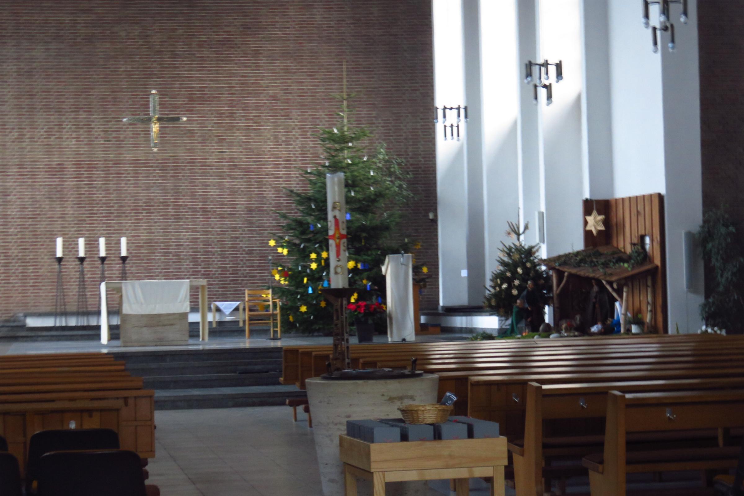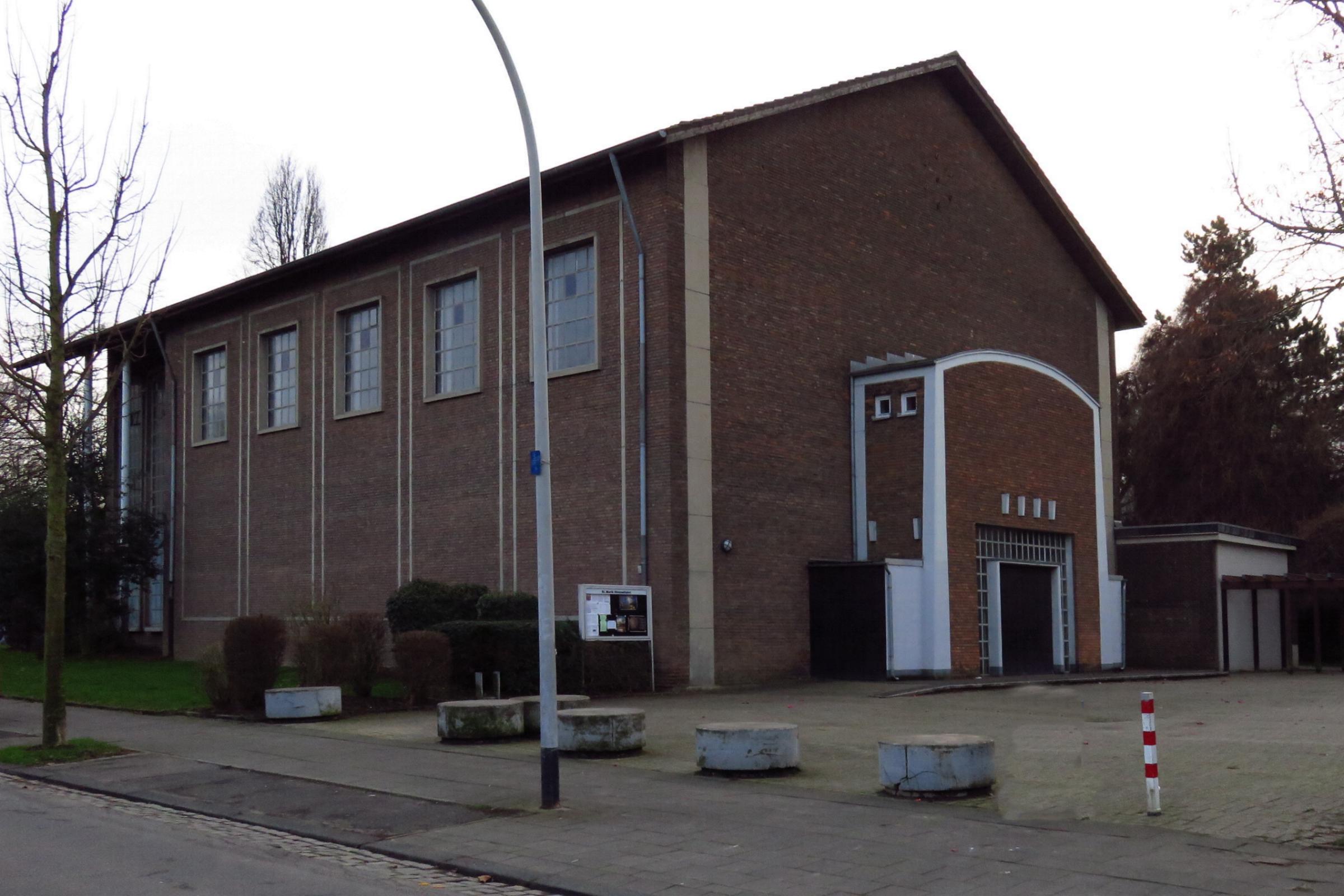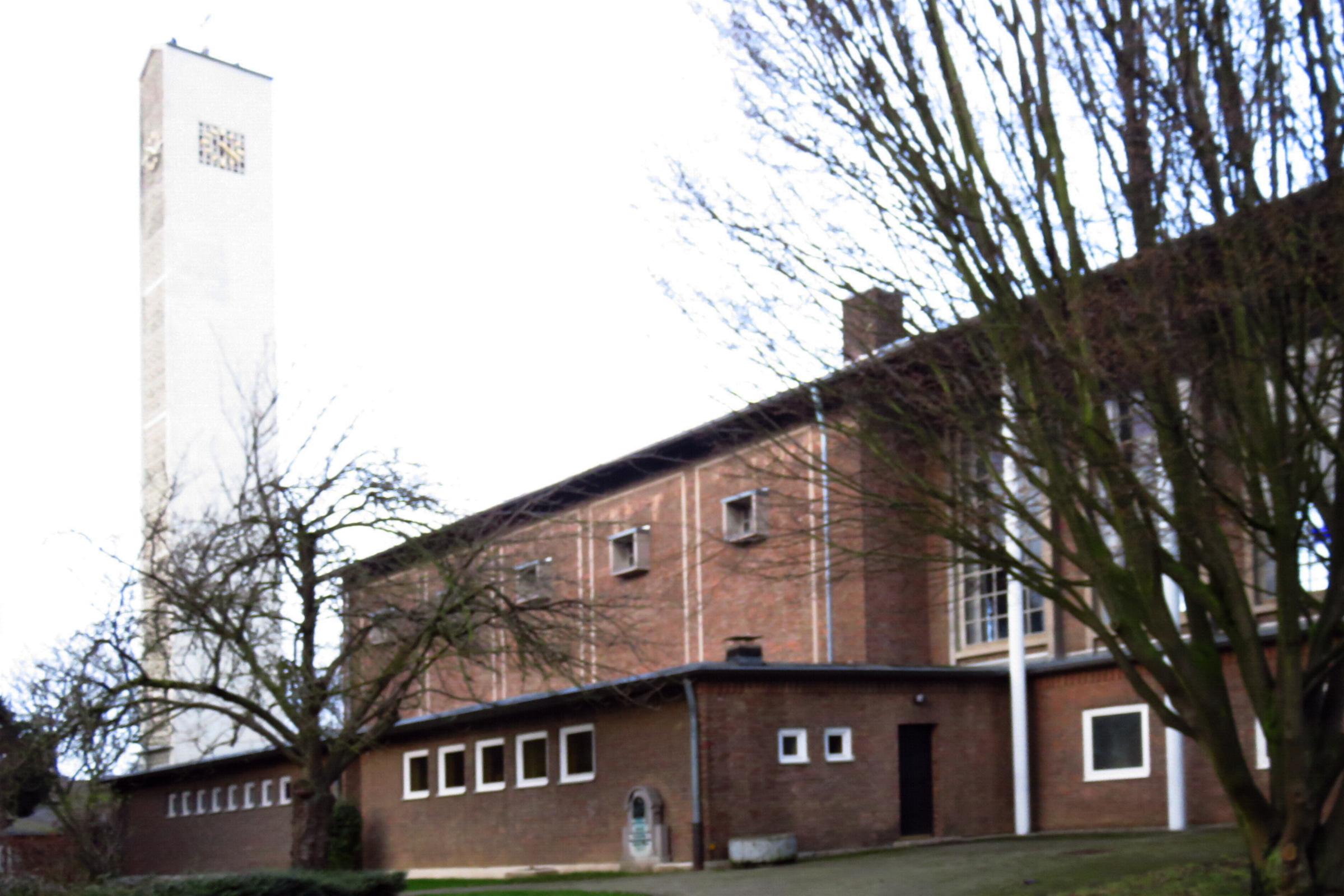 Architektur: Bei der Kirche handelt es sich um einen Saalbau mit einem Satteldach. Der Altarraum im Süden ist leicht eingezogen. An der Westseite befindet sich die Sakristei und ein niedriges Seitenschiff. Davor freistehend der rechteckige Turm unter einem Satteldach. Quellenhinweis: * Dritte Ausgabe 1994: Handbuch des Bistums Aachen ISBN 3-87448-172-7 S. 1105-1106 Ausstattung: * Die Kirche hat 270 Sitzplätze. * Im Kirchturm ist eine Uhr eingebaut.