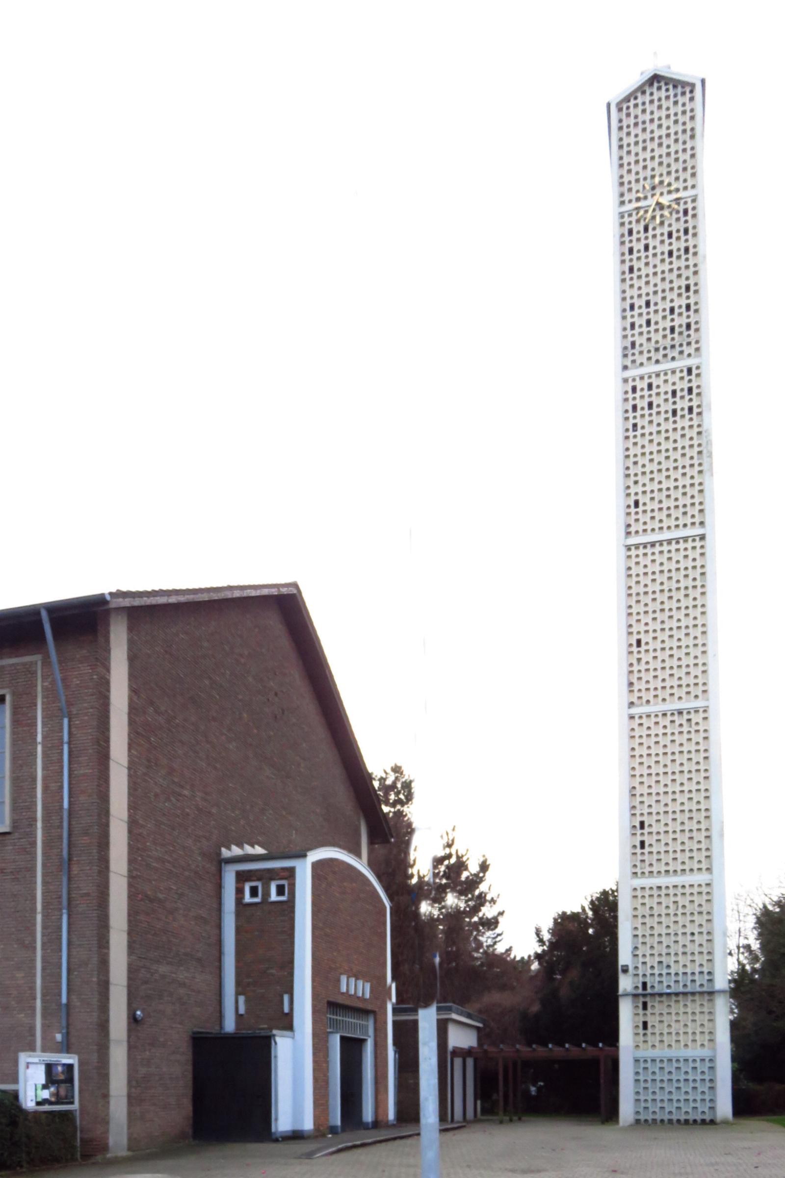 29' 10,5 O Zuständigkeit: Kath. Pfarrgemeinde Meerkamp Baujahr: 1956/57 Einweihung: 26. Mai 1957 Pfarrgemeinde in der GdG Mönchengladbach - Giesenkirchen |