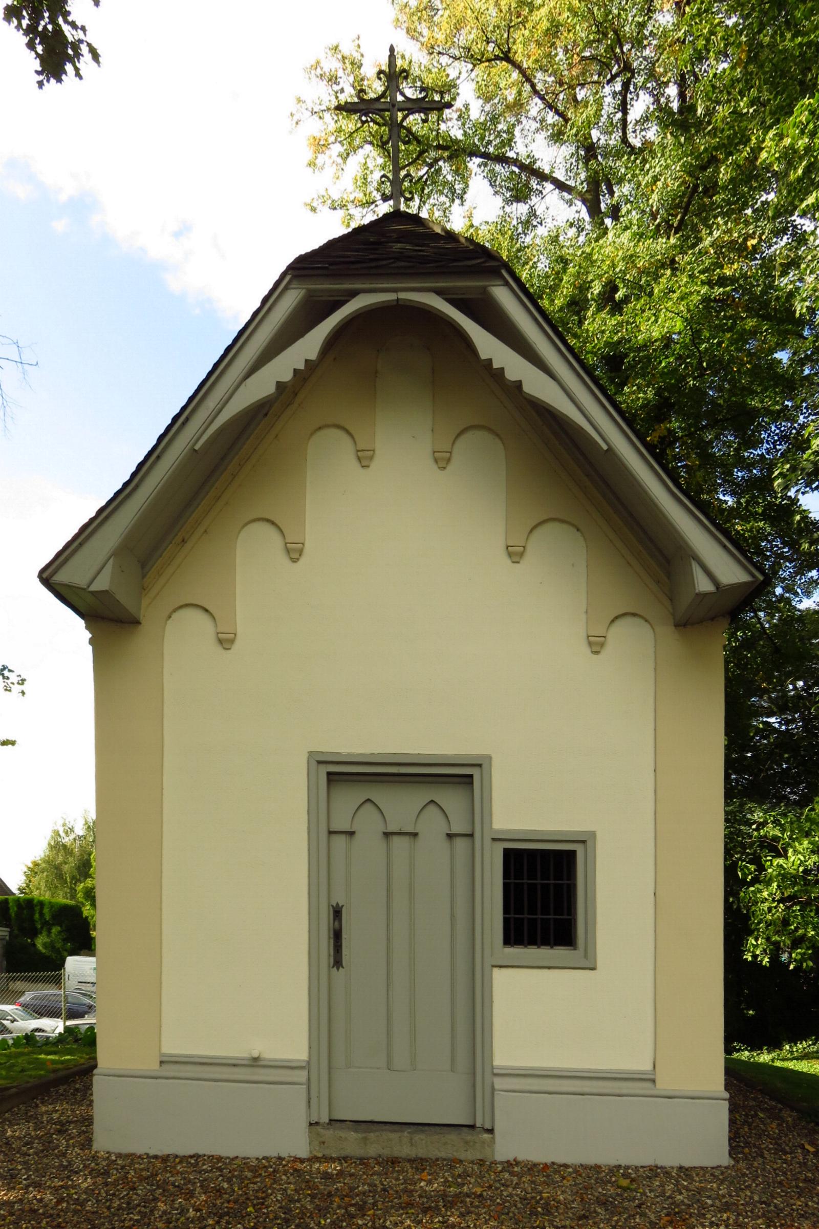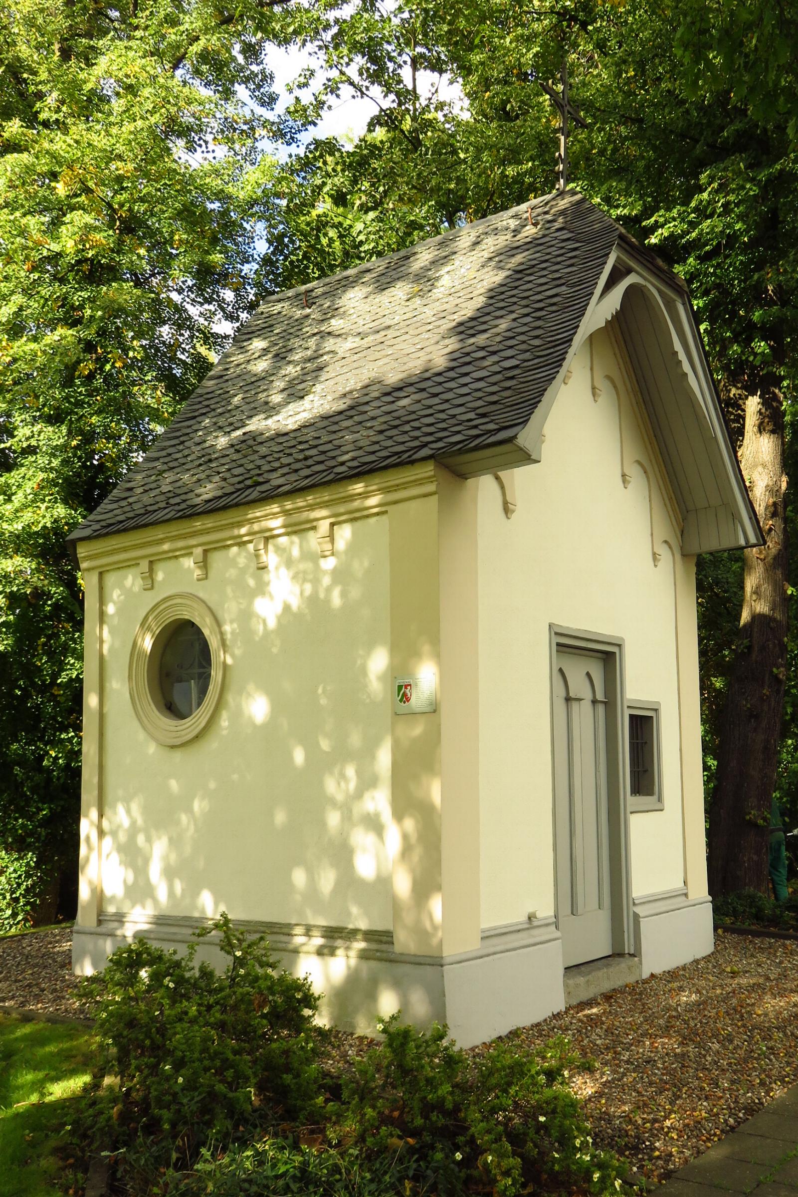den Innenraum gestatten soll. Das Krüppelwalmdach ist schiefergedeckt. Die Kapelle ist aus geschichtlichen wie religionshistorischen Gründen schützenswert.