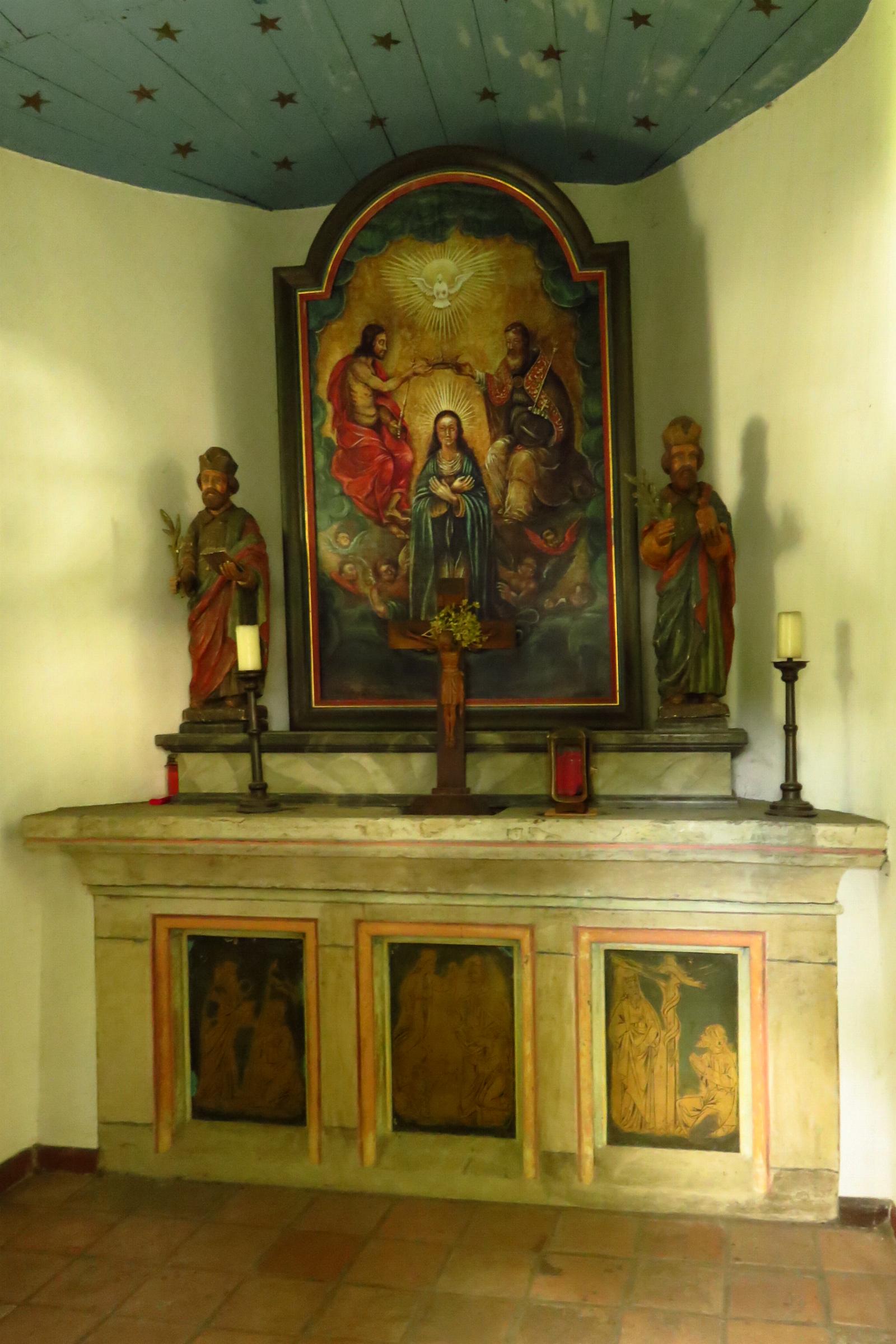 Kapellchen wird von einem umlaufenden Schmutzsockel unterfangen. Die