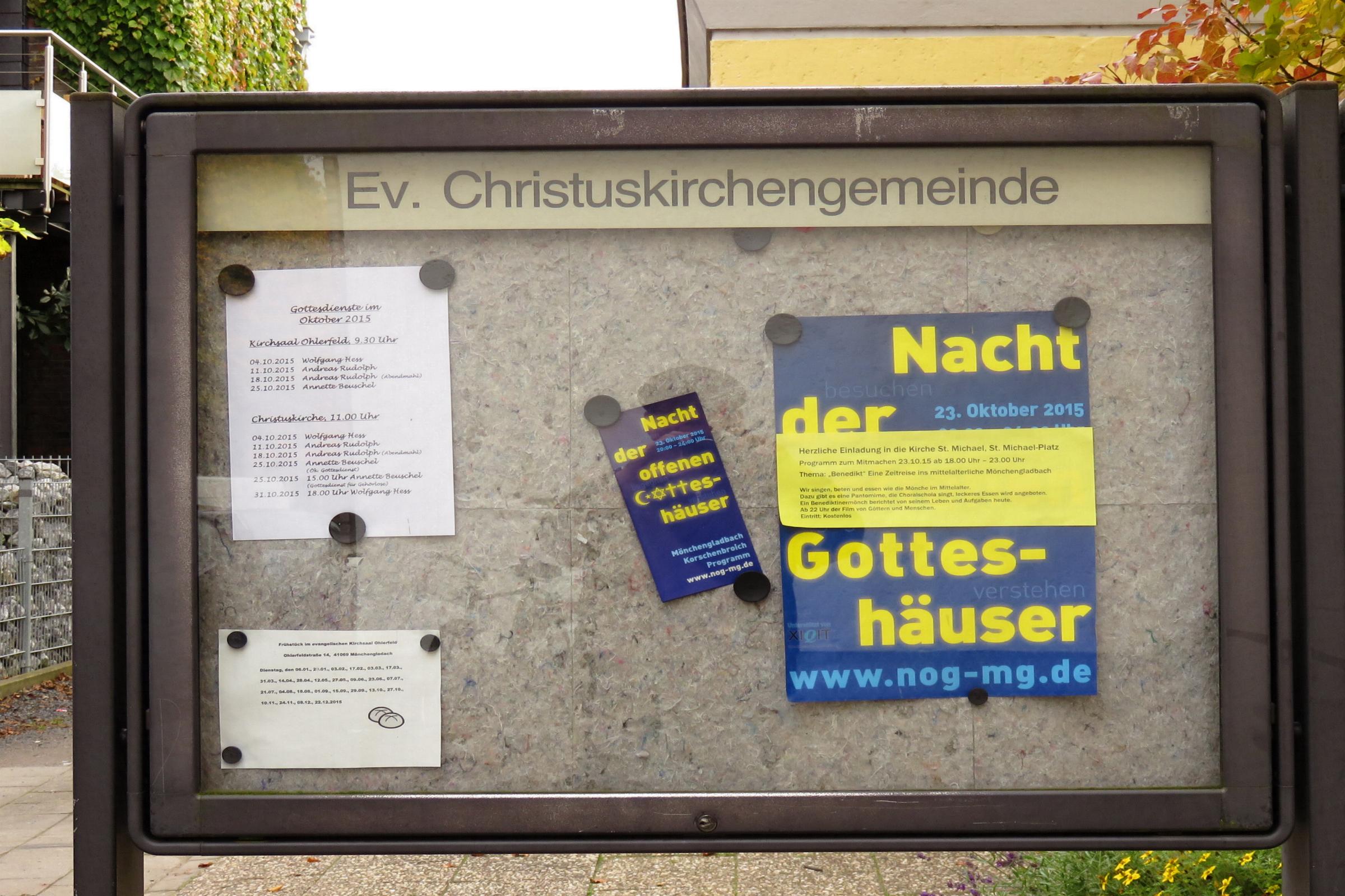 Ausstattung: * In der Kirche sind ein Altar, ein Taufstein, ein Verkündigungspult uvm. * Im Kirchturm befindet sich eine Glocke. * In der Kirche sorgt eine Orgel für musikalische Begleitung. Infos zur Kirche: * Evangelische Kirche in der Stadt Mönchengladbach