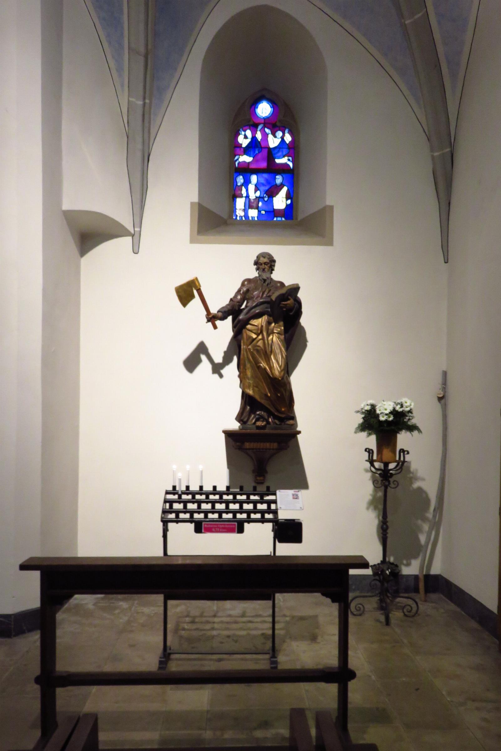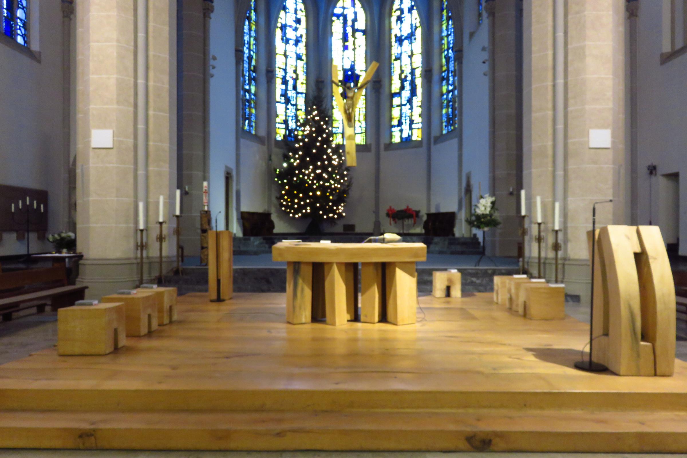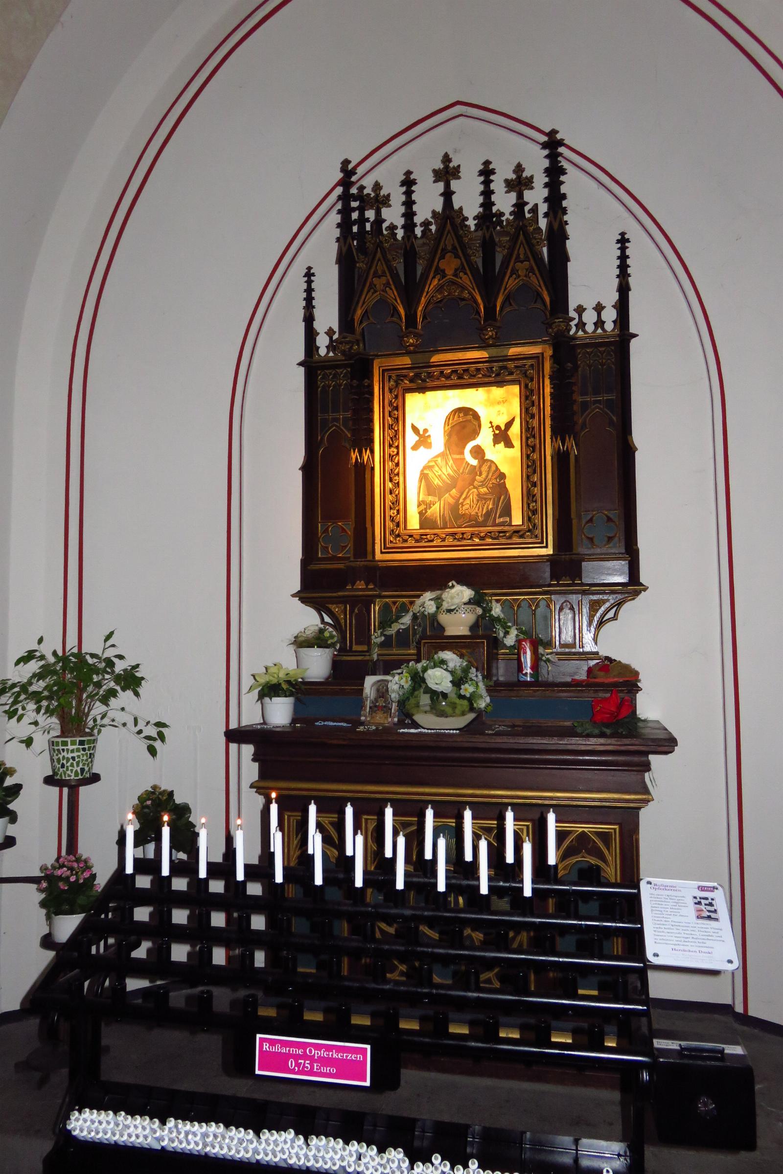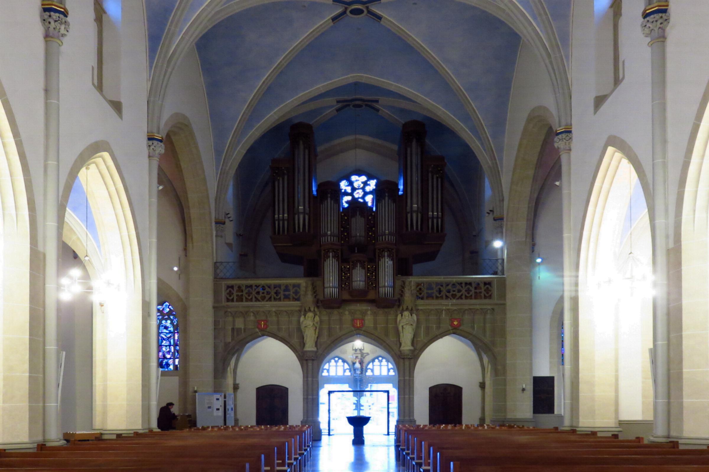 Ausstattung: * Die Kirche hat 250 Sitz- und Stehplätze. * In der Kirche sind ein Altar, ein Tabernakel, ein Taufstein, ein Verkündigungspult und Heiligenfiguren. * Die Orgel mit 40 Registern und einer mechanischen Traktur, wurde 1982 von Fa. Seifert gebaut. * Im Kirchturm befinden sich sechs Glocken aus den Jahren 1912, 1924 und 1979 * Die Kirche besitzt eine Buntverglasung