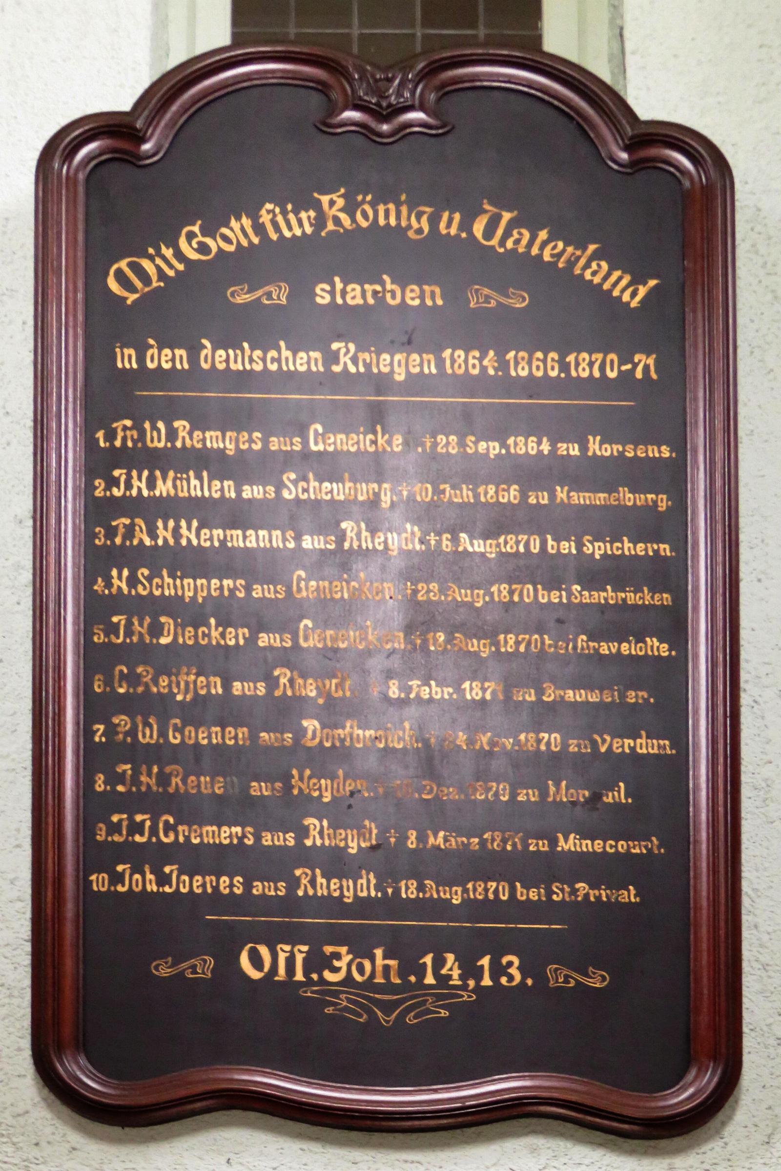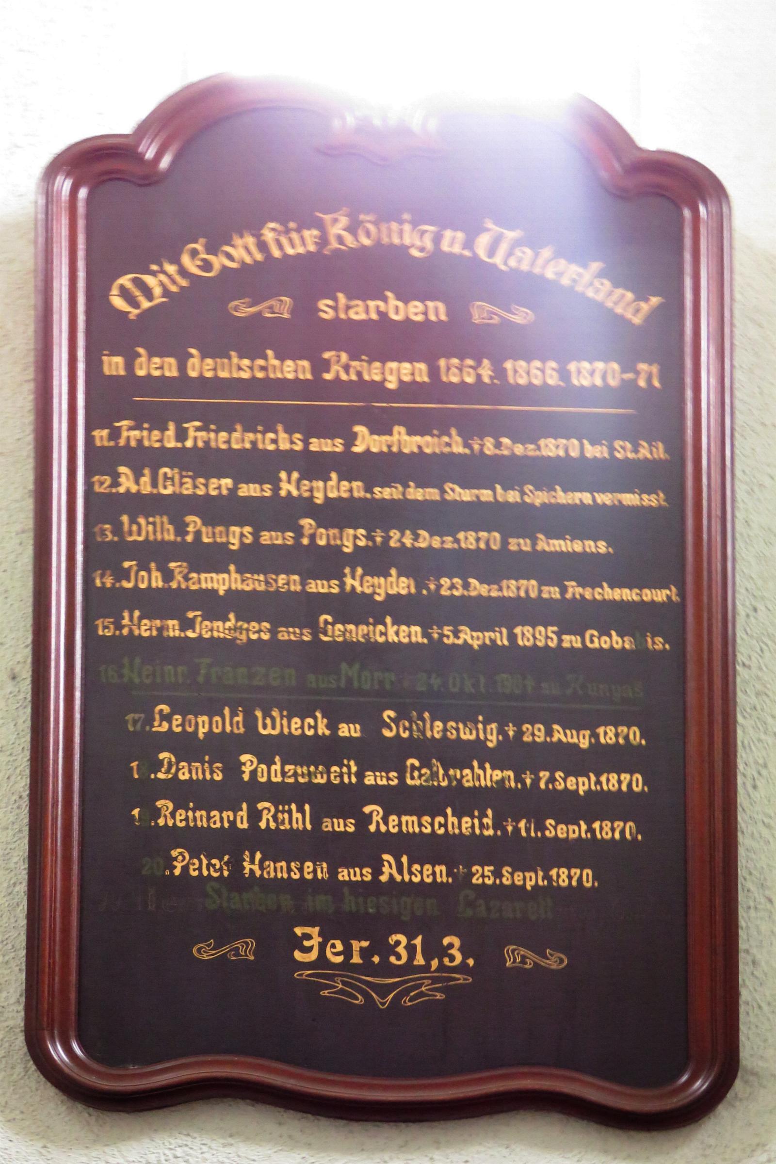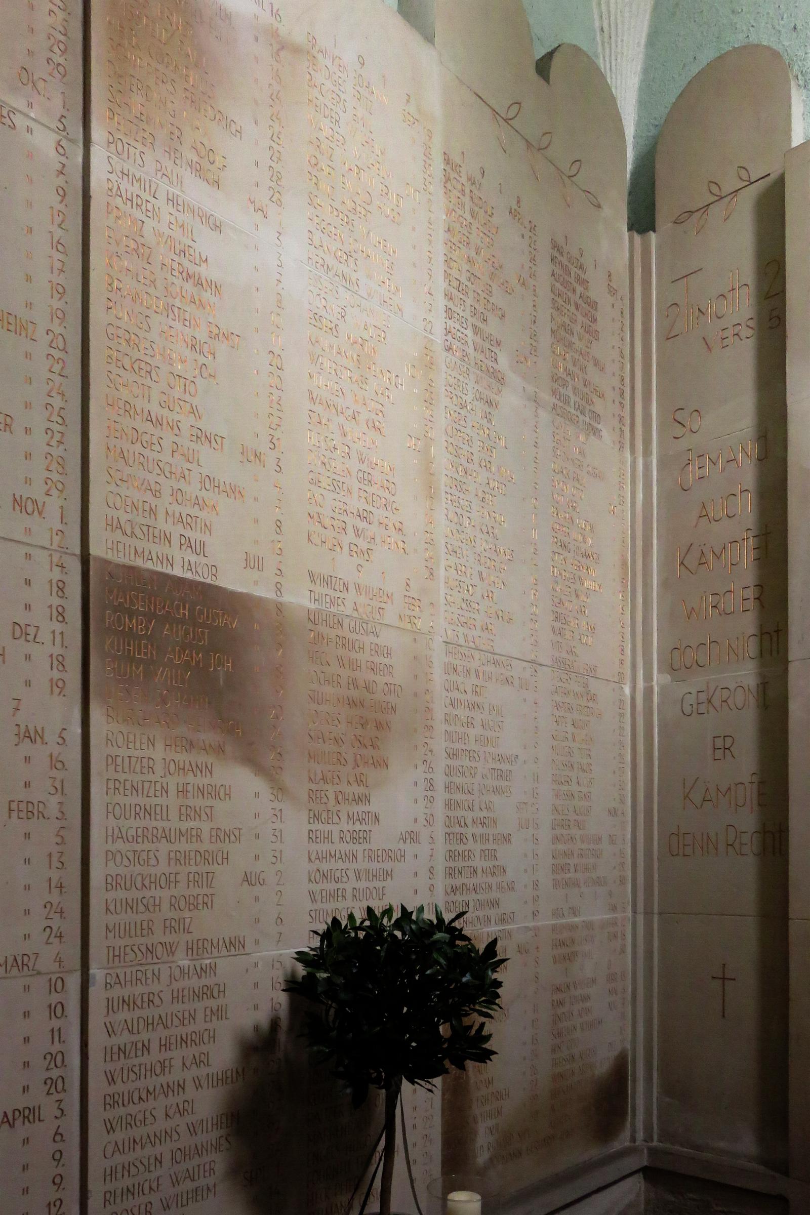 Vorraum, der als Erinnerung an die Toten des 1. Weltkrieges auf beiden Längsseiten