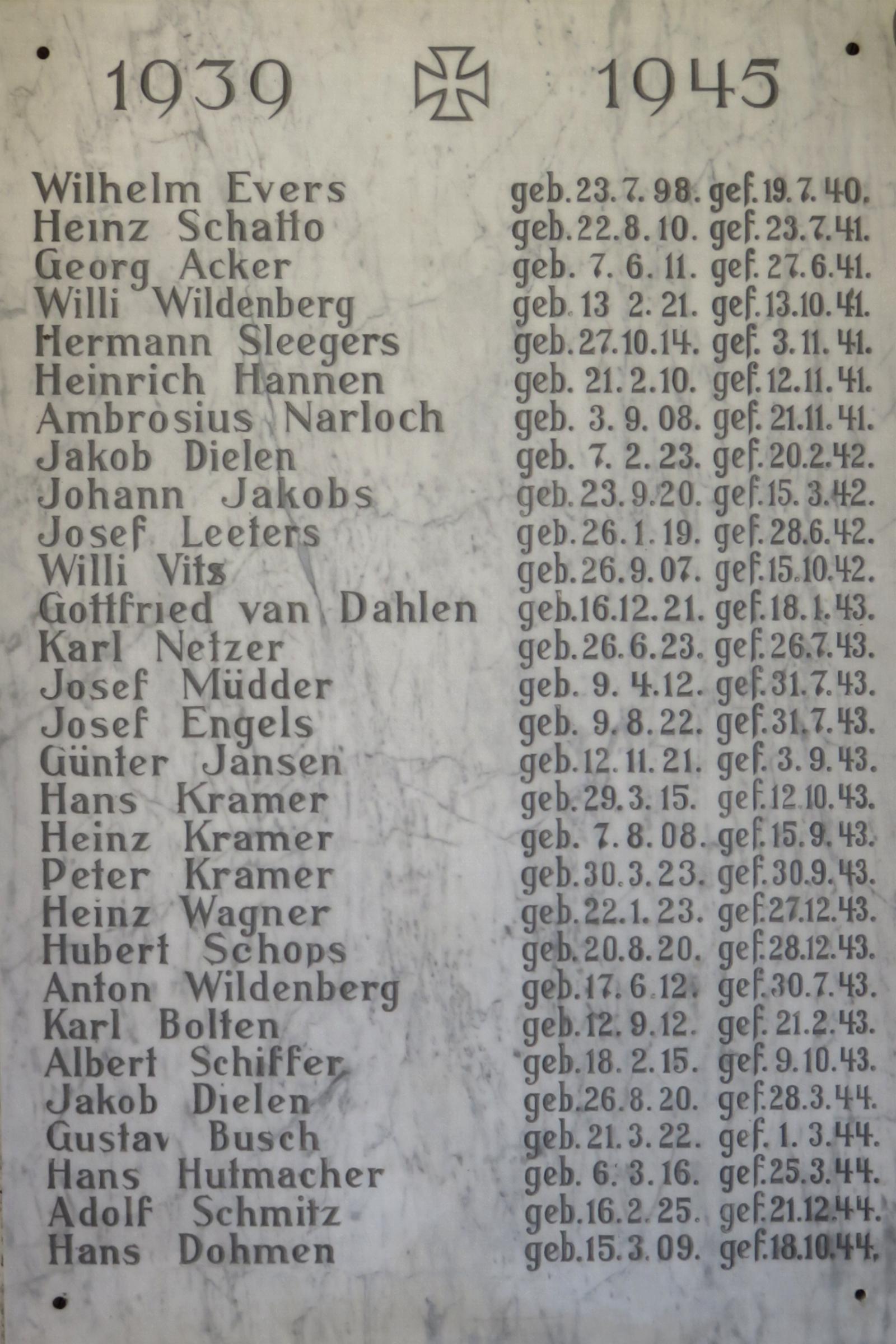 In der Stufe vor der Mensa eine Inschrift: ERBAUT 1814 J. P. H. ERNEUERT 1949 Das Objekt ist schützenswert aus ortsgeschichtlichen und volkskundlichen Gründen. Quellenhinweis: * Denkmalbeschreibung Mönchengladbach, Nr. R 087