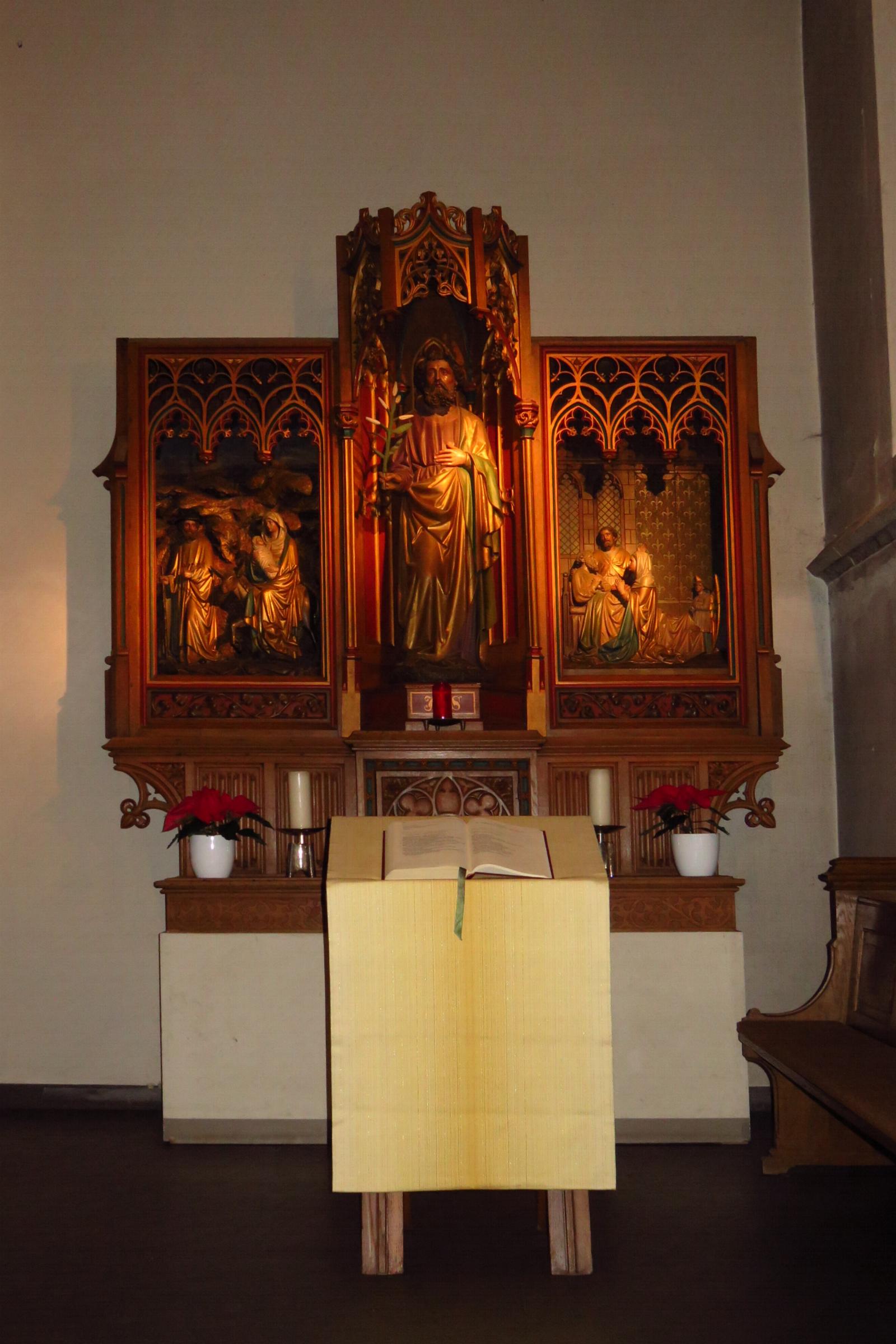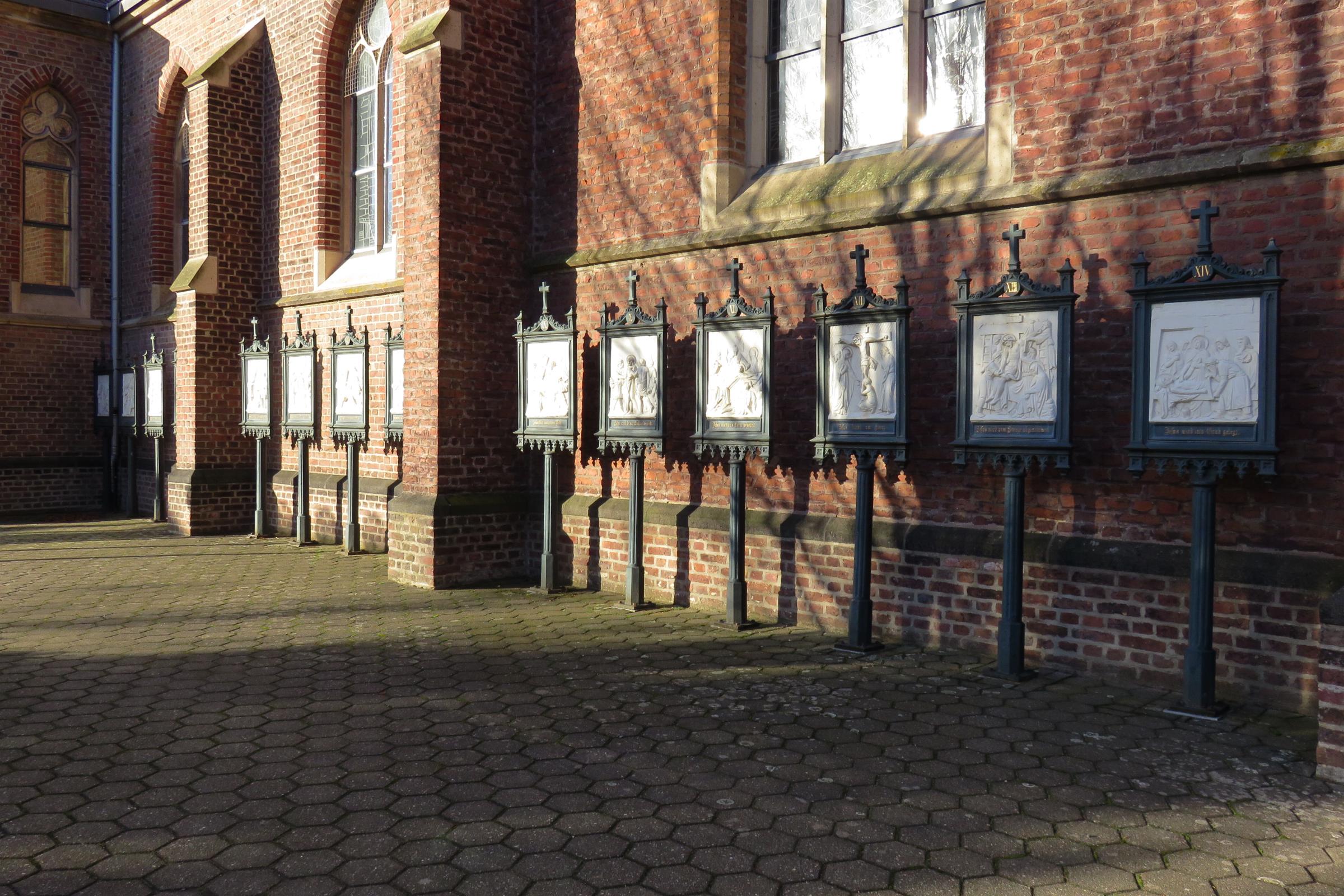 Geschichte: Durch ein Vermächtnis der Geschwister Hansen kam die Kirchengemeinde Venn 1867 in Besitz von Bauland und Kapital. Am 20. September 1867 beantragte der Oberpfarrer Lelotte beim Generalvikariat die Baugenehmigung. Die Kirche sollte nach den gleichen Plänen von Baumeister Vinzenz Statz wie die Vollmerswerther Kirche gebaut werden. Der Turm wurde nach Plan von Maurermeister Donners hinzugefügt. Am 27. Oktober 1869 wurde die Kirche benediziert und am 27. Juli 1872 geweiht. 1908 wurde an das Querschiff nach Osten ein Erweiterungsbau gesetzt. Die Kriegsschäden durch Granatbeschuß am 1. März 1945 waren 1949 behoben.1972 - 1975 wurde die Kirche renoviert und der Altarraum umgestaltet. Am 31. Mai 1975 war die feierliche Weihe des Altares.