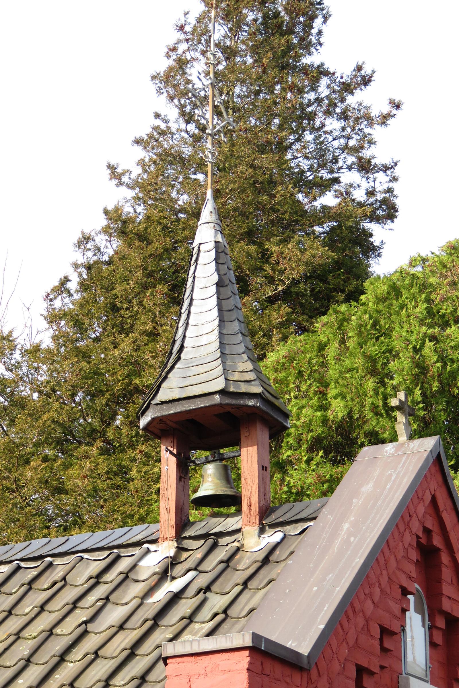 Dachreiter mit Glöckchen, der mit einem Kreuz in Form eines auf der