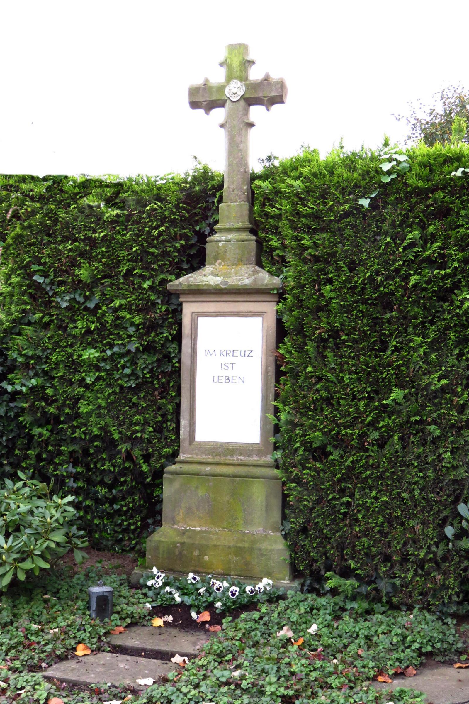 Standort: Das Wegekreuz hat seinen Standort in Hehn neben Haus Nr. 83 Stadtteil Mönchengladbach - Hehn. Es handelt sich um ein Steinkreuz ohne Korpus. Im mittleren Schaft steht der Schriftzug: "Im Kreuz ist Leben." Geschichte: Neben dem Haus Hehn 83 steht seit 1997 ein Wegekreuz, es handelt sich dabei um ein altes Friedhofskreuz einer Grabstätte des nahen Hehner Friedhofes. Das alte Grabkreuz, in seiner Zweitverwendung nun ein Wegekreuz, ist in Sandstein ausgeführt, es ist ca. 3,5 m hoch, mehrfach gestuft und steht auf einer Sockelplatte aus Basaltlava. Der blockhafte Unterbau springt in ein hochrechteckiges Mittelteil zurück, das eine weiße Marmorplatte mit der Aufschrift: " Im Kreuz ist Leben" trägt. Auf der Rückseite dieser Platte befinden sich noch die Namen der im Grab beigesetzten Familienmitglieder. Dieses Mittelteil ist die mehrfach profilierte Basis des Kreuzstamms. Der Kreuzstamm und die gefaßten Balkenenden tragen doppelte Nasen. Das Kreuz hat keinen Korpus, dafür im Schnittpunkt der Balken eine weiß gefasste Gusseisen-Plakette. Als Relief ausgearbeitet sind darauf ein Kreuz, ein Anker und ein Herz zu erkennen. Dieses Kreuz entspricht dem Typ der Friedhofskreuze, wie sie am Ende des 19. Jahrhunderts, aber auch noch bis ins erste Drittel des folgenden auf den Friedhöfen der Stadt aufgestellt wurden. Vereinzelt stehen sie auch heute noch auf alten Familiengräbern. Text aus Sakrale Kleindenkmäler - Wegekreuze in Mönchengladbach. Nr. N 5 von Heinz Habrich - Klaus Hoffmann