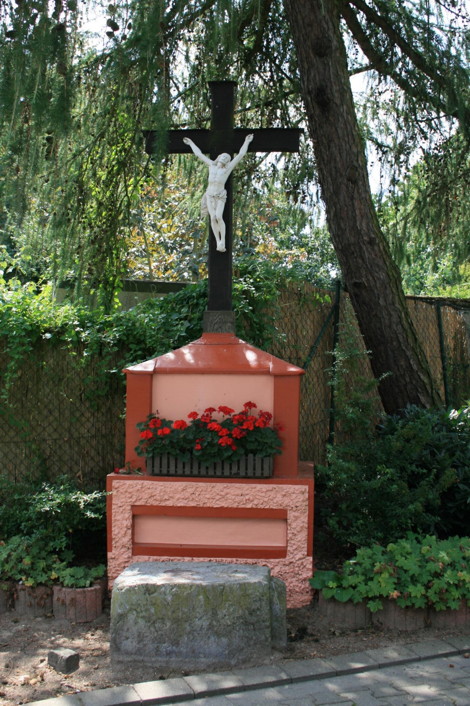 Standort an der Gerkerather Mühle 38, im Stadtteil Mönchengladbach - Rheindahlen. Das Wegekreuz steht in der Denkmalliste der Stadt Mönchengladbach