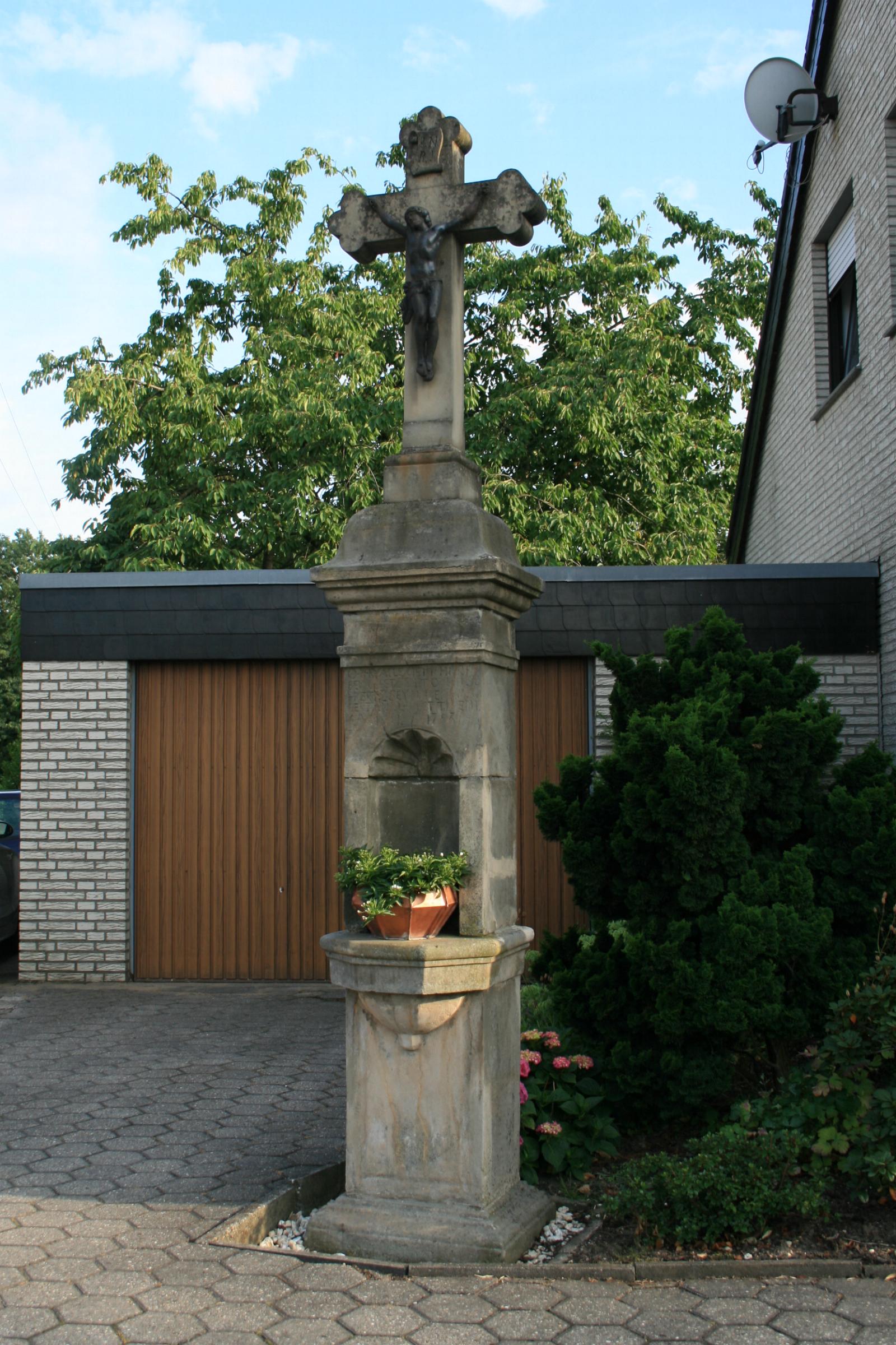 Denkmalbeschreibung: Das Wegekreuz steht vor dem Gebäude Sittard 10 a in Sittard. Es ist ein Schaftkreuz mit Metallcorpus. Sockelplatte mit Karnies. Unterbau mit annähernd quadratischem Querschnitt und erhabener Ansichtsfläche. Profilierte Konsole zum Abstellen einer Monstranz. Im Mittelteil Rundbogennische (Konche), die in der Kalotte ein Muschelornament zeigt. Darüber nicht lesbare Inschrift. Mehrfach profiliertes Gesims, als tragendes Karnies in die Basis für das Schaftkreuz mit Metallcorpus, Inschrifttafel und dreipassförmigen Balkenenden. Das Objekt ist aus kunsthistorischen, orts- und sozialgeschichtlichen Gründen als Baudenkmal schützenswert.* Denkmaleintrag der Stadt Mönchengladbach Nr. S 011 vom 14. September 1993
