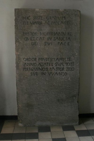 36 ANNOS PASTOR ZELO SUS IN WANLO Die Grabplatte stammt von der