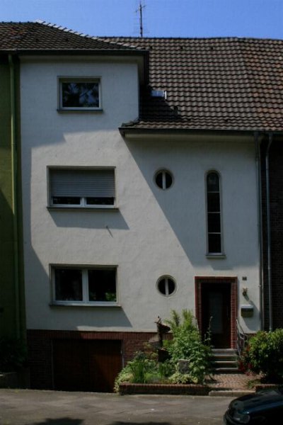 als zweieinhalbgeschossiges und zweiachsiges Reihenhaus mit Garage