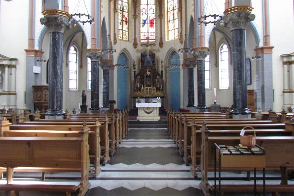 Denkmalbeschreibung: Erbaut: 1878 (Vincent Statz); 3schiffige, neugotische Basilika mit Querschiff, polygonalem Chor, vorgesetztem Westturm der vom Quadrat ins Polygon übergeht, Backstein mit Sandsteingliederung; die Innenausstattung weitgehend erhalten; im Kirchenbereich ein Hochkreuz aus Sandstein und Grabkreuze des 17, und 18. Jh. aus Sand – und Blaustein.
