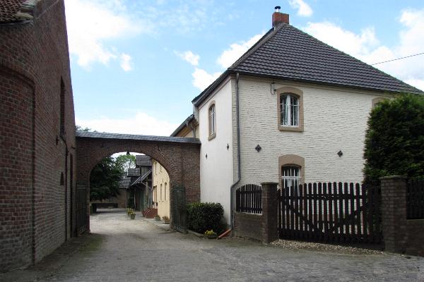 Landw. Betrieb Gut Neuhöfchen in Grevenbroich - Neurath Denkmalbeschreibung: 1788 errichtete 4-flügelige geschlossene Backstein-Hofanlage mit 2-geschossigem Wohnhaus. Das Wohnhaus ist in 3:7 Achsen gegliedert; seine Außenfassaden sind geschlämmt, die Hofseite rauverputzt. Es hat Stichbogenfenster; bis auf ein Fenster sind die Sandsteingewände entfernt. Der vordere Wohnhausanbau ist von 1912. Im Wohnhaus sind alte Fußböden und Kölner Decken erhalten. Die Scheunentrakte stammen aus dem 19. Jahrhundert: |