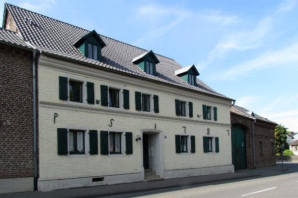 Hofanlage in Grevenbroich - Allrath Denkmalbeschreibung: 4-flüglige geschlossene Backsteinhofanlage von 1787 mit 2-geschossigem Wohnhaus in 5 Achsen mit Sandsteingewänden. Die Fassade wurde 1896 leicht verändert; die Scheunentrakte stammen ebenfalls aus dem Jahr 1896 und sind teilweise zweigeschossig ausgebaut. Die Hofanlage wurde in den 1990er Jahren komplett zu einer Eigentums-Wohnanlage unter Wahrung der Denkmal-Belange umgebaut.