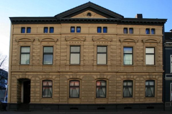 Wohnhaus in Neuss Denkmalbeschreibung: Um 1870 erbaut; Putzfassade mit Neurenaissance-Schmuckformen, EG rustizierte, im OG Quaderputz, 2-geschossig mit Mezzanin in 6 Achsen, Satteldach; die beiden Mittelachsen leicht vorgezogen und durch Dreiecksgiebel mit Rundbogenfenster betont, zurückgesetzter Eingang in der linken Achse, Fenster mit Segmentbögen und Dreiecksgiebeln verdacht, Fenster im Mezzanin paarig zusammengeordnet; linke Giebelseite freistehend, glatt verputz mit einer mittleren Fensterachse; Tür bis auf Oberlicht Originalzustand, neue zweiteilige Fenster. Wichtiges Zeugnis der Stadtbaugeschichte, erhaltenswert insbesondere aus städtebaulichen Gründen.