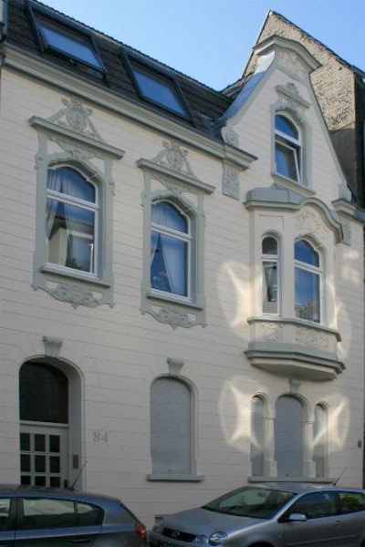 Wohnhausfassade u. straßenseitige Dachfläche in Neuss Denkmalbeschreibung: Das Wohnhaus Sternstraße 84 wurde ausweislich seiner Formgebung wohl in direkter zeitlicher Nähe zum 1907 datierten Nachbarhaus 86 errichtet. Das traufständige zweigeschossige Wohnhaus ist als Reihenhaus an beiden Seiten angebaut. Seine dreiachsige Fassade zeigt über beiden Geschossen ein Zwerchhaus. Der Eingang ist über Stufen erhöht in der linken Achse eingenischt. Das Dachgeschoß ist zur Straße hin als Mansarde ausgeführt, in die moderne Dachflächenfenster eingebaut sind.