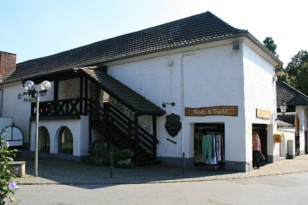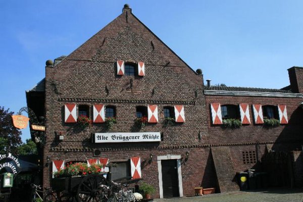 Wohn- u. Geschäftshaus, Wegekapellchen und Wassermühle in Brüggen Denkmalbeschreibung: 18. - 19. Jh.; Backstein mit Ankersplinten, Walmdach rückwärtige Seite im linken Teil verputzt mit Blausteintürrahmung und Treppe, verputztes Tor mit Blausteinrahmung, links dazugehörig Wegekapellchen. Rückwärtig die Alte Brüggener Mühle.