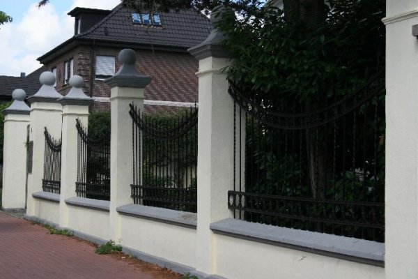 mit Schmuckgitter zwischen gemauerten Pfeilern. Die denkmalgeschützten