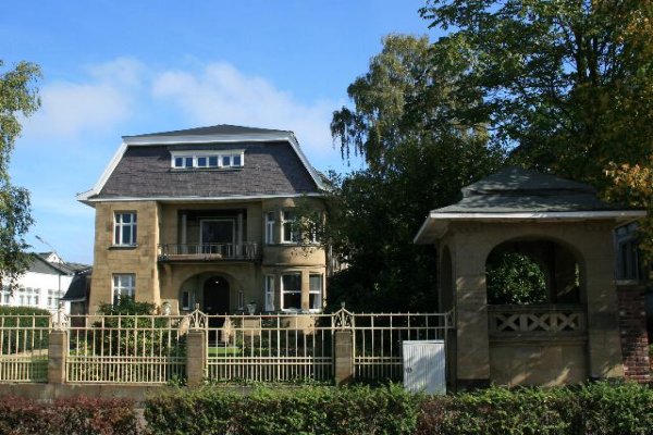 Ehem. Landhaus in Oedt Denkmalbeschreibung 1908, die Brücke 1929, ehem. Landhaus Johannes Girmes, II-geschossige Villa in 3 Achsen, Sandstein mit Werksteinfassaden, Mittelachse stark verbreitert und zurückversetzt mit eingezogenen Balkon mit Säulenstellung. Im Obergeschoß, rechte Achse als halbrunder Erker ausgebildet, steiles verschiefertes Mansardendach, seitliche Fassade gestaffelt mit geschwungenem Giebel und darüber hervortretendem Dach. Anbau mit direktem Brückenzugang zur Fabrik. Nutzung: Bürogebäude.
