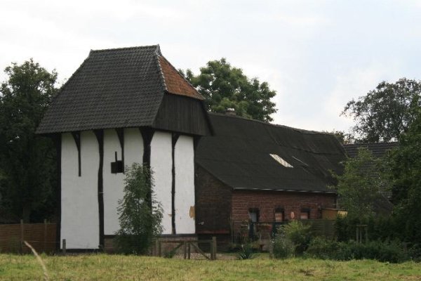 Berfes auf dem Raveshof in St. Hubert Denkmalbeschreibung: 2-geschossiger Fachwerkturm mit wehrgangähnlich vorkragendem Obergeschoß (1981 restauriert) |