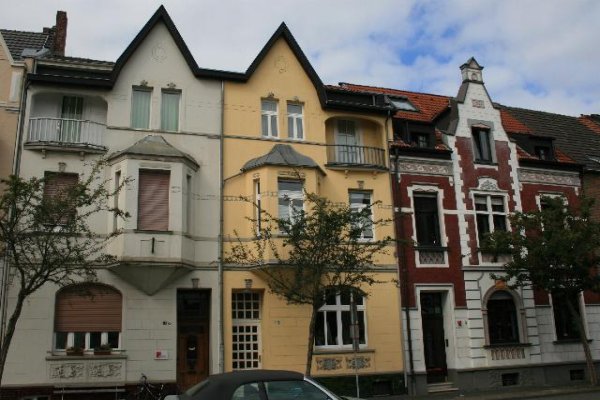 Siegfriedstraße 12 - 16 Denkmalbeschreibung: Das zweigeschossiges Gebäude gliedert sich vertikal in drei Achsen. Die mittlere Achse ist ein Risalit mit stufigem Giebel und aufwendigem Stuckdekor besonders hervorgehoben. Fenster und Tür sind mit profiliertem Gewände ausgestattet, wobei das Mittelfenster im EG einen Rundbogen formt und von stilisierten Stuckpilastern gerahmt wird. Das Erdgeschoß hat eine Putzquaderung. Im ersten Obergeschoß wird der Fassadencharakter durch den roten Klinkerstein bestimmt. Unterhalb der Fenster befinden sich Stuckkassetten. Das mittlere Fenster besitzt ein steinernes Fensterkreuz. Zwischen Fensterbereich und Hauptgesims verläuft ein Jugendstilfries. Das Satteldach besitzt zwei Dachgauben aus der Erbauungszeit. Der antikisierende Giebel trägt die Jahreszahl 1909. Die Fenster u.a. im Erdgeschoß sind reich gestaltet und in den Oberlichtern kleinteilig gegliedert. Die Grundrissanordnung ist noch original. Es sind noch weitgehend die alten Türen und Dielenböden erhalten. In seinem repräsentativen Charakter ist das Gebäude in architektonischer und städtebaulicher Hinsicht ein in besonderer Weise erhaltenswertes Beispiel für die Stadtentwicklung zwischen Altstadtbereich und Bahnhof.