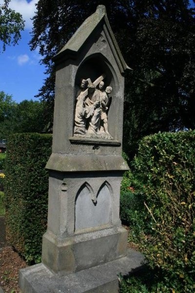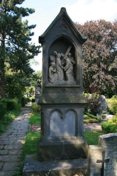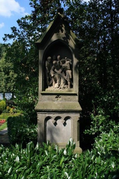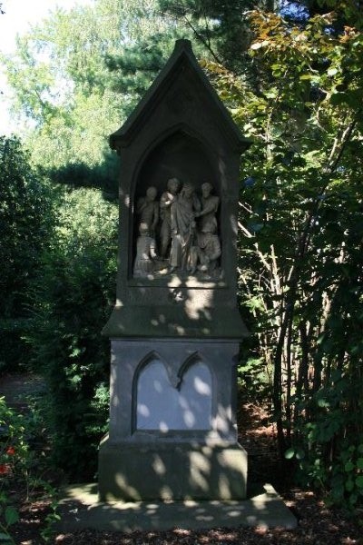 Denkmalbeschreibung: 1860 rechteckige Anlage mit neugotischen Kreuzwegstationen von 1865/ 66 aus Sandstein