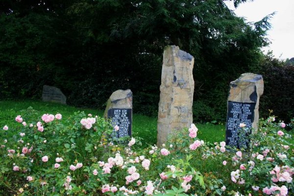 Hintergrund steht der Gedenkstein der Stadt Kaldenkirchen (1964;