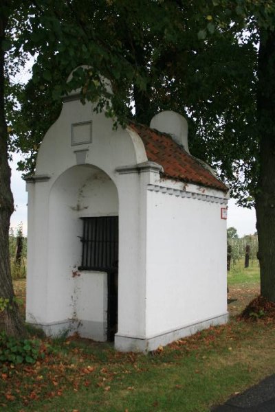 Wegekapelle am Heierhof in Huverheide Denkmalbeschreibung: Backsteinbau, Ende 19. Jh. verputzt mit großer Rundbogennische, Schweifgiebel und Zackenfried versehen, Inschrift im Giebel.