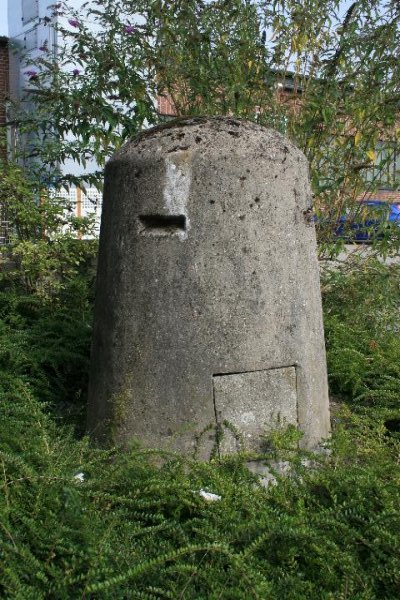 Splitterschutzzelle (Einmannbunker) in St. Tönis Denkmalbeschreibung: Es handelt sich um einen etwa mannshohen Betonkörper in Fingerhutform (die für diesen Bautyp geltenden Richtlinien sahen eine Höhe von mind. 1,90 m und Wandstärke von 15 - 25 cm vor). Der Zugang erfolgte durch einen mit Betontür gesicherten Einstieg, ihm gegenüber befindet sich ein kleiner Notaustieg. Vier horizontale Sichtschlitze in Köpfhöhe ermöglichen die Rundumsicht in die verschiedenen Himmelsrichtungen.