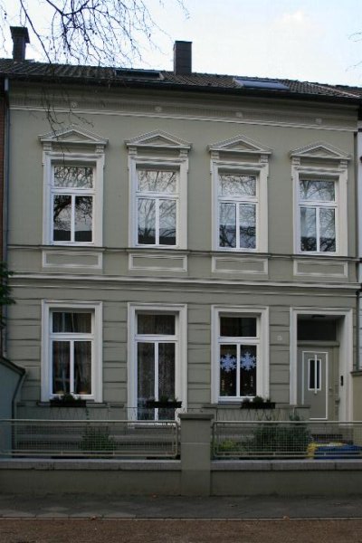 Wohnhaus in Dülken Denkmalbeschreibung: Das im Jahre 1885 an der ehemaligen Friedensstraße erbaute Doppelhaus mit Satteldach ist spiegelbildlich in zwei Geschossen und je vier Achsen errichtet. Die strenge Fensterachsensymmetrie der beiden Fassaden wird in der Horizontalen durch Gurt-, Fensterbank- und Kranzgesims betont. Die beiden Putzfassaden sind in unterschiedlichen historisierenden Schmuckformen gehalten. Die beiden Eingänge liegen mittig, daneben je eine Veranda, die auf dem vorgezogenen Kellergeschoss liegt. Den Häusern vorgelagert ist ein Garten, der zur Straße mit einer Säulenordnung und dazwischenliegenden Gittern abgegrenzt ist. Die modernisierten Fenster der Gebäudehälfte Theodor-Frings-Allee 14 übernehmen die ursprüngliche Teilung und sind von flachen Dreiecksgiebeln überspannt. Das Gebäude wurde im Innern 1981 intensiv modernisiert. Vorhanden sind noch der originale Terrazzoboden im Flur sowie die originale Holztreppe mit schlichtem Geländer. Teilweise ist an den Decken noch ein Hohlkehlfries und im Flur ein schlichtes Profilgesims vorhanden. Das Gebäude ist von einem Gewölbekeller