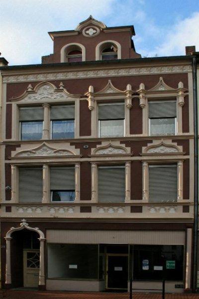 Wohn- und Geschäftshaus in Dülken Denkmalbeschreibung: Das zur Lange Straße traufseitig errichtete Wohn- und Geschäftshaus ist dreigeschossig und in vier Achsen gegliedert. Die historisierende Backsteinputzfassade erfuhr 1967 erdgeschossig durch den Umbau des Ladenlokals eine Veränderung. Die auf der linken Seite liegende Eingangstüre, mit aufwendiger unregelmäßiger Sprossenteilung, blieb von der Modernisierung unberührt. Hier ist der Eingang von zwei vorgeblendeten Stützen mit darüber liegenden gotisierenden Giebeln besonders hervorgehoben. Zu den Obergeschossen wird die Ladenansicht durch ein breites Brüstungsgesims mit Spitzbogenmotiv abgegrenzt. Die beiden linken Achsen sind zusammengezogen. Hier werden zwei Fenster mit einem floral geschnitzten Giebel überdeckt. Die Fenstergiebel werden insgesamt durch vorgeblendete Säulen getragen. Ein breites Kranzgesims, mit Rosetten geschmückt, leitet zu den Dachhäuschen mit zwei rundbogenüberdeckten Fenstern über. Im Innern des Gebäudes ist die ursprüngliche Holztreppe mit gedrechselten Geländerstäben sowie einzelne Türen mit profilierter Türleibung erhalten. Ebenfalls sind in den einzelnen Räumen noch Stuckfriese mit floralen Motiven erhalten, jedoch wurden diese zum Teil durch Einziehen leichter Trennwände geteilt. Der Keller ist von einer Kappendecke überspannt. Die originale Putzfassade des Hauses ist als wesentliches Identifikationsmerkmal an der Lange Straße zu betrachten und trägt somit für die Unverwechselbarkeit des Straßenraumes bei. Aus wissenschaftlichen, insbesondere städtebaulichen, stra-ßenprägenden und architekturgeschichtlichen Gründen liegen Erhaltung und Nutzung des Gebäudes gemäß § 2 (1) des Denkmalschutzgesetzes im öffentlichen Interesse.
