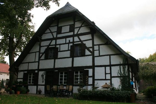 Denkmalbeschreibung Diese Hofanlage liegt in ihren Ursprüngen, gegen Ende des 16. Jahrhunderts, in der Honschaft Streithoven an der Verbindungsstrasse des ehemaligen Kirchspiels Willich nach Osterath. Sie war in Form eines Streuhofes angelegt, siehe hier auch die Kartographierung durch Tranchot/Müffling 1806, und wurde erst gegen Ende des 19. Jahrhunderts zu ihrer jetzigen dreiseitig geschlossenen Form umgestaltet. Das Wohnhaus besteht aus einem Fachwerkgebäude mit ziegelgedecktem Krüppelwalmdach. Der Corpus ist mehrgliedrig aufgeständert, wobei sich teilweise bei den Streben, Rahmen und Pfosten eine Überdimensionierung feststellen lässt. Auch sind teilweise die vorgenannten Konstruktionsteile noch heute gut als schmückende Elemente dargestellt. Die Ausfachungen sind gemauert, geputzt und weiß geschlämmt. Das Innere des Hauses wurde zwar nach den heutigen Wohnbedürfnissen umgestaltet, die Gliederung bzw. Konstruktion des Ständerwerkes oder des Dachstuhls wurde dagegen nicht in seiner Substanz oder Darstellung ge- oder zerstört. Im Inneren sind teilweise Pfosten, Rähme, Kopfbänder und Traversen naturbelassen sichtbar geblieben Durch das Verhältnis von den erdgeschoßigen, äußeren Fachwerkwänden am Herrenhaus zum tief heruntergezogenen großflächigen Dach, zeigt sich hier ein zur damaligen Zeit urtypisches, niederrheinisches Fachwerkwohnhaus. Die linksseitig angebauten Scheunen und Stallungen sowie auch die zwei freistehenden dazugehörigen Hofgebäude, darunter ein ehemaliges Schlachthaus, sind jüngeren Datums und bestehen hauptsächlich aus Feldbrandziegelmauerwerk, Satteldach mit Ziegeleindeckung. Abgesehen von den ausgestellten Blockgesimsen sind sie relativ schmucklos. Tor-, Tür- und Fensterüberdeckungen sind scheitrecht, segmentiert oder korbbogenförmig. Im Bereich des ehemaligen Schlachthauses fallen besonders die Mezzaninfenster in sechs Achsen besonders auf. Zusammenfassend ist festzustellen, dass die vorgeschriebene Hofanlage in ihrer Gesamtheit als Ensemble die erforderliche Prämisse zur Unterschutzstellung aufweist und deshalb aus siedlungs- und ortsgeschichtlichen Gründen in die Denkmalliste einzutragen ist.