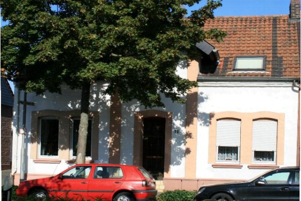Siedlungshaus in Schiefbahn (rechte Haushälfte) Denkmalbeschreibung: Diese Hausbesitzung, Albert-Oetker-Str. 32, gehört zu den ältesten Häusern der sogenannten Seidenwebersiedlung. Es ist ein eingeschossiges, traufenständiges Gebäude mit ziegelgedeckten Satteldach und ausgebautem Dachgeschoss. Das Wohnhaus ist zweiseitig angebaut, ist dreiachsig und besteht in seiner Fassade aus glattem Zementputz (mineralfarbengestrichen) auf Feldbrandziegelmauerwerk. Die Fenster sind segmentbögenförmig überdeckt und haben stark ausgeprägte Gewände. Über der 3. Achse (Haustür) besteht eine Verdachung mit einem mittigen Rundbogenfenster. Die Fassade selbst ist bis auf 2 Lisenen, unterhalb der Verdachung als Betonung der 3. Achse, relativ schmucklos. Die Grundrisse im Erd- und Obergeschoss befinden sich noch im alten Zuschnitt. Wie oben schon erwähnt, ist das Haus ist Bestandteil der sogenannten "Seidenwebersiedlung", erbaut um 1890 als Arbeitsstättennahes Domizil für die Arbeitnehmer der ehemaligen Tuchfabrik Deuß und Oetker (heute Verseidag AG). Es ist bis heute ein wichtiges Dokument der Ortsgeschichte, der Geschichte der Textilindustrie am Niederrhein sowie ein Zeugnis der Fabrik- und Siedlungsarchitektur des späten 19. Jahrhunderts aus dem sich die damaligen Arbeits- und Lebensverhältnisse ablesen lassen. Mithin besteht ein öffentliches Interesse an der Erhaltung und Nutzung dieses Gebäudes.