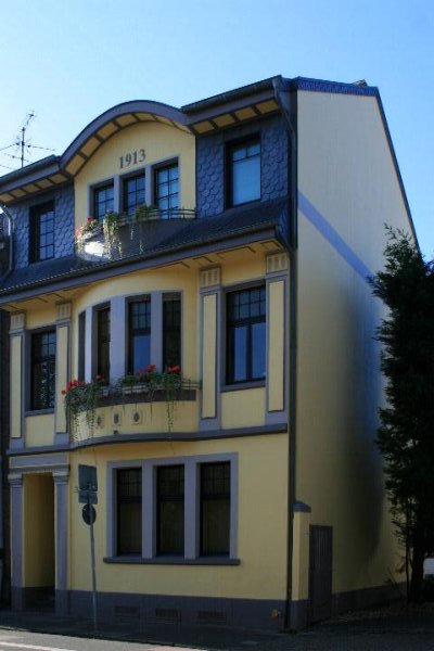 Wohn- und Geschäftshaus in Willich Denkmalbeschreibung: Bei diesem Objekt handelt es sich um eine Villa im Stil der Gründerzeit aus dem Jahre 1913, in traufenständiger Form und mit einer gut akzentuierten Putzfassade. Das Gebäude ist zweigeschossig mit 3 Achsen und besitzt ein ausgebautes Mansarddachgeschoß mit Ziegel- und Schiefereindeckung. Auffallend ist im 1. Obergeschoss die Ausrundung der straßenseitigen Außenwand im Bereich der 2. Achse mit einer vierteiligen Fensteranordnung; außerdem sind die paarweise zusammengestellten Balkenkonsolen im Gesimsbereich dominant dargestellt. Mit den beiden Pilastern am Hauseingang, dem leicht angedeuteten Gurtgesims und den vier vertikalen kartuschenähnlichen Putzfeldern zwischen den einzelnen Achsen ist die Fassade ein gutes Beispiel der damals bevorzugten Putztechnik am Ende des 19. und 20. Jahrhunderts. Im Inneren des Hauses sind vor allem einige schwere Wohnungstüren mit breiter Füllung mit profilierter Bekleidung, der im Erdgeschoss befindliche gemusterte Fliesenboden im Bereich des Treppenhauses, die hölzerne Geschosstreppe in geschlossener Konstruktion mit ausgearbeiteten Holzgeländer sowie einige noch vorhandene Stuckdarstellung im Deckenlampenbereich vorhanden. Das Gebäude besitzt im linken hinteren Bereich einen Flügelanbau sowie ein ehemaliges Stallgebäude, die als Ensemble mit einbezogen werden. Die Konzeption dieser Besitzung stellt im Bereich der Alt-Willicher Innenstadt ein gutes Beispiel des um die Jahrhundertwende angewandten Baustils in klarer Form dar. Aus orts- und architekturgeschichtlichen Gründen ist eine Unterschutzstellung erforderlich.