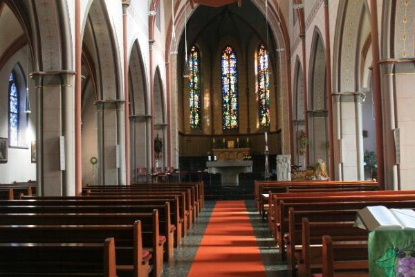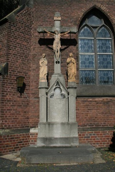 Kath. Pfarrkirche St. Hubert in Schiefbahn Denkmalbeschreibung: Die Kirche wurde 1854/55 vom Dombaumeister V. Statz aus Köln errichtet. Es handelt sich hierbei um eine dreischiffige, neugotische Backsteinbasilika mit dreiseitigem Chorabschluss und leicht vorgesetztem Westturm. Das südliche Querschiff ist neu ergänzt. An der Südfassade befindet sich eine Kreuzigungsgruppe von 1904. Denkmalwert ist ebenfalls die historische Innenausstattung der Kirche.Der Innenraum der Pfarrkirche Die Kreuzigungsgruppe
